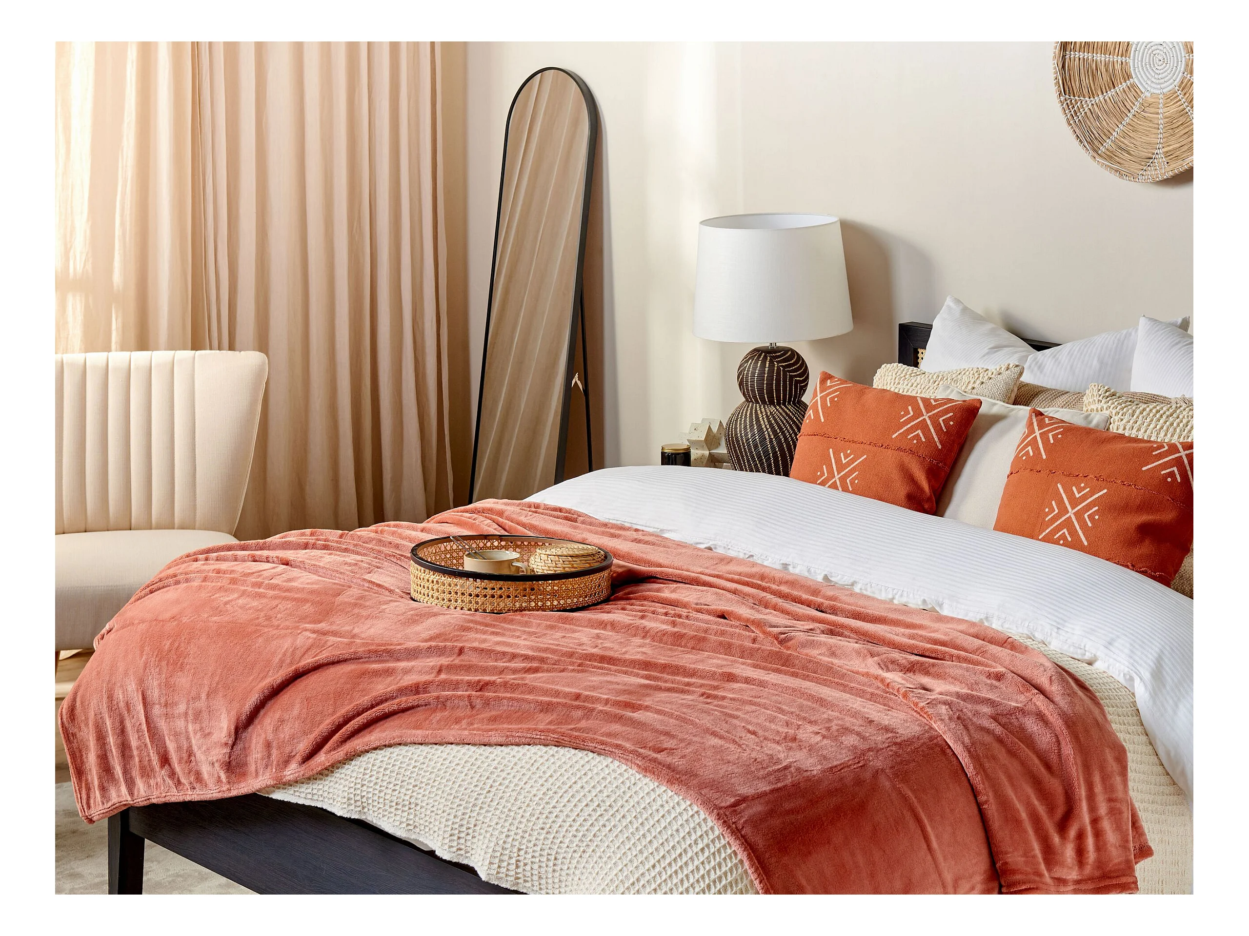 Narzuta na łóżko MARAKA Bawełna 150 x 200 cm Jasnoczerwony