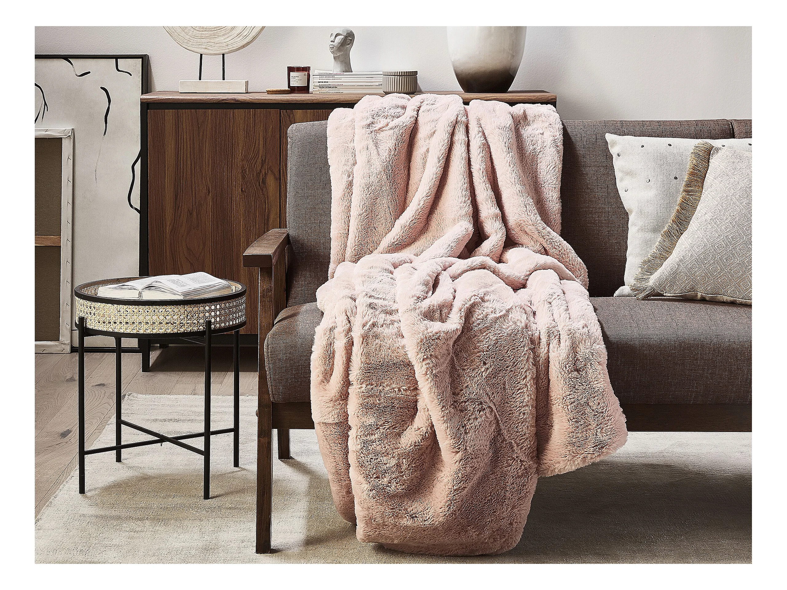 Koc SALKA Sztuczne futro 150 x 200 cm Pastelowy róż