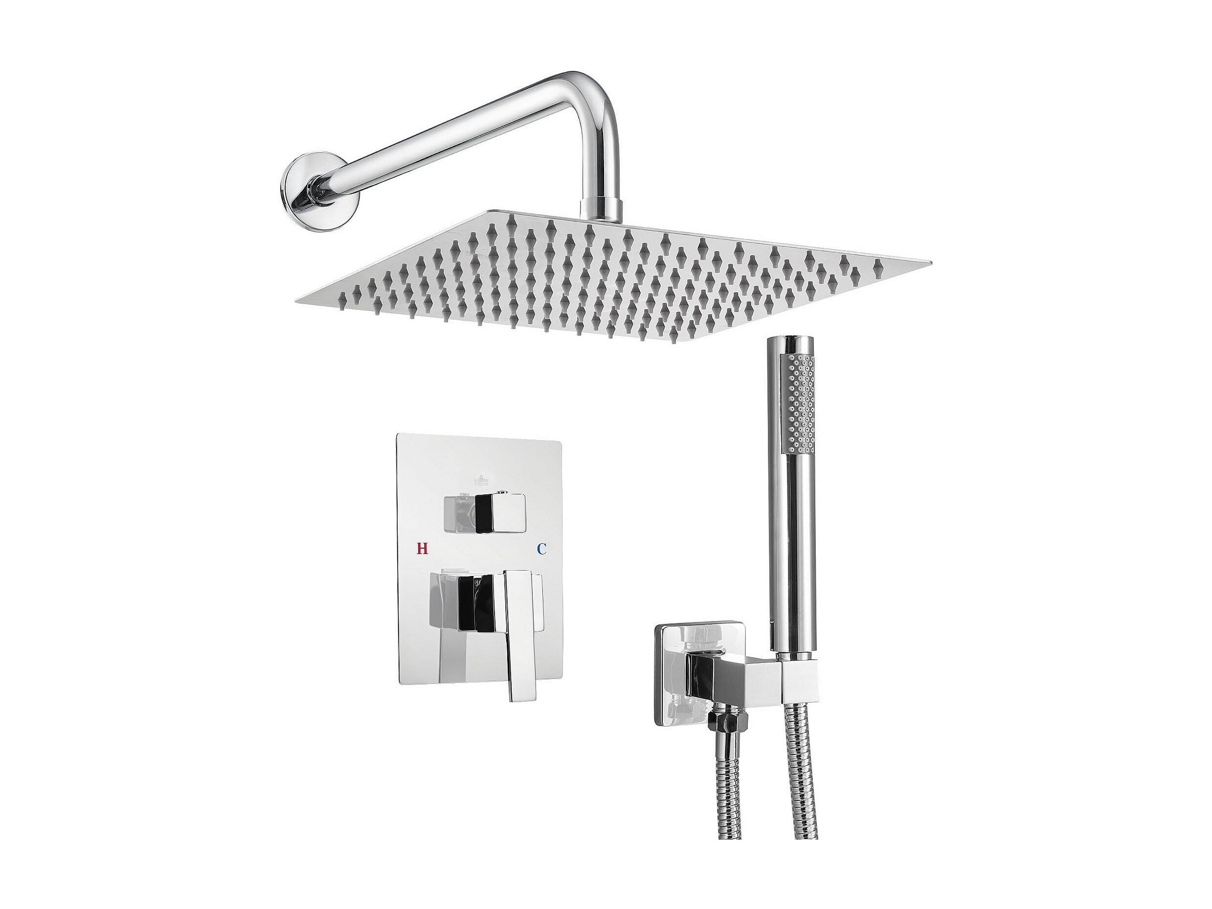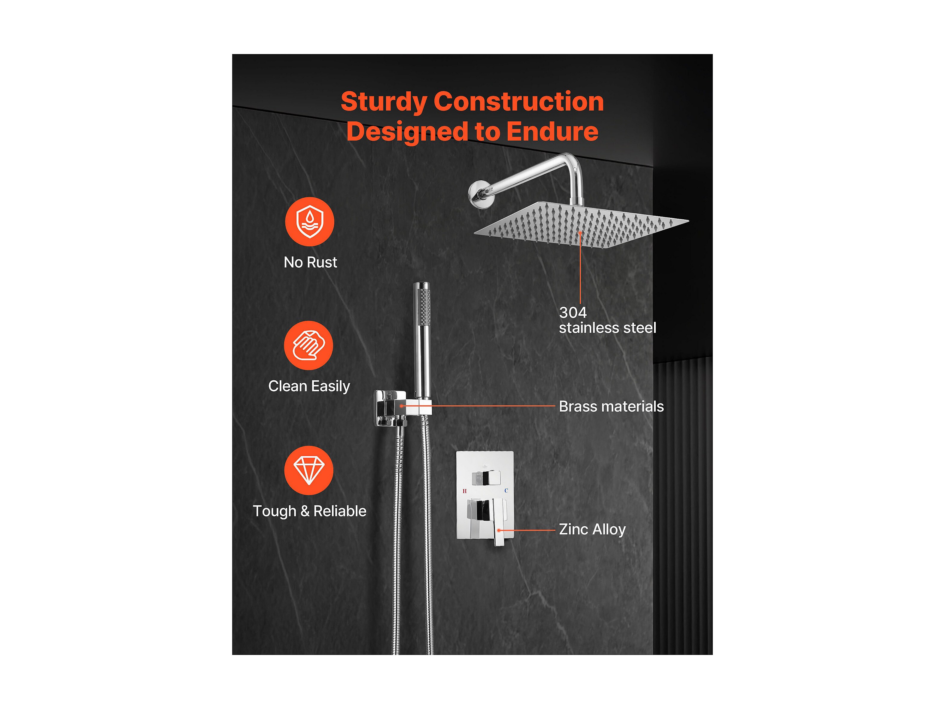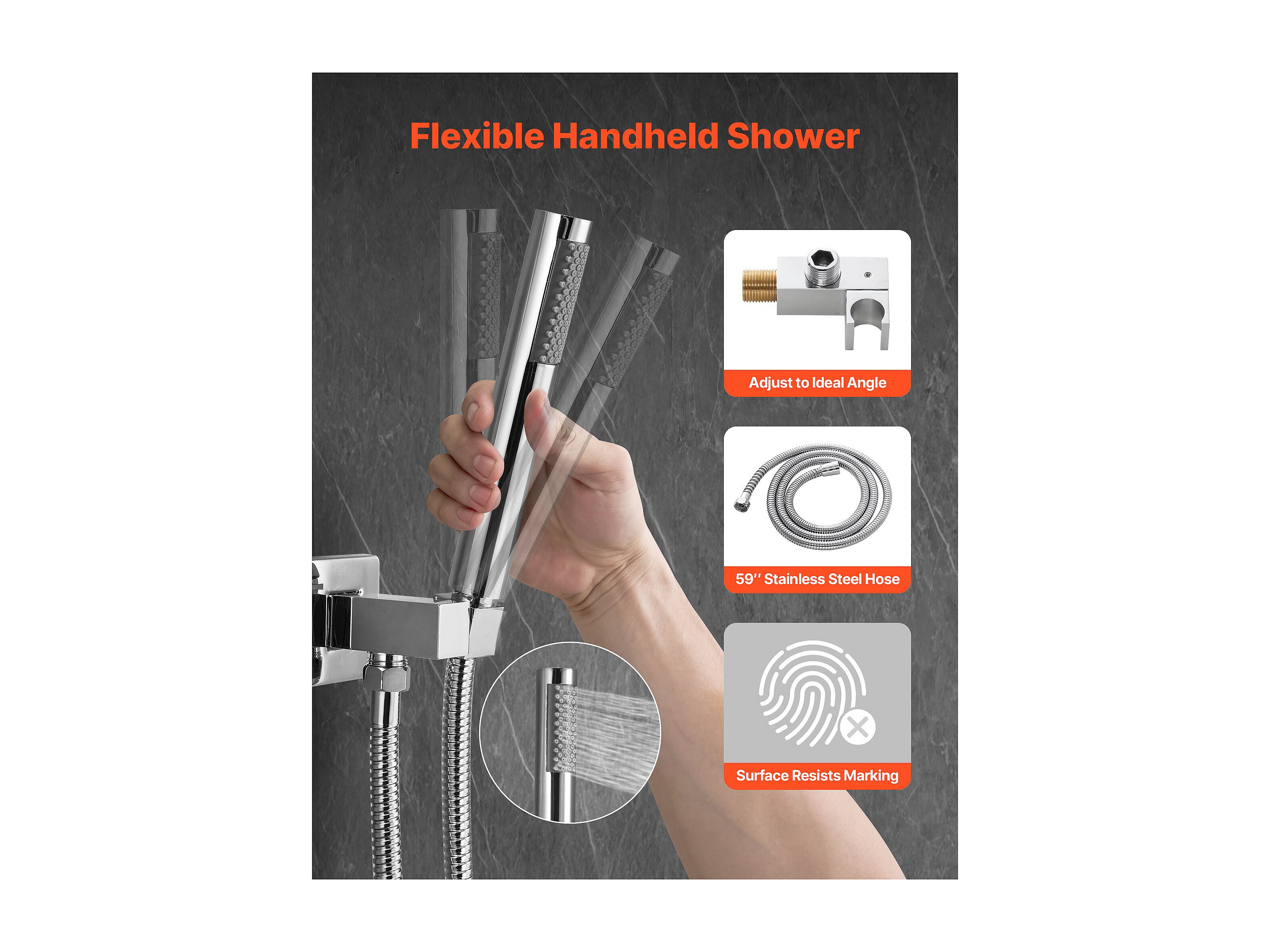 Kolumna Prysznicowa SucceBuy Zestaw Prysznicowy, Deszczownica z Kwadratową Głowicą Prysznicową 254 mm, Prysznicem Ręcznym i Zestawem do Montażu na Ścianie