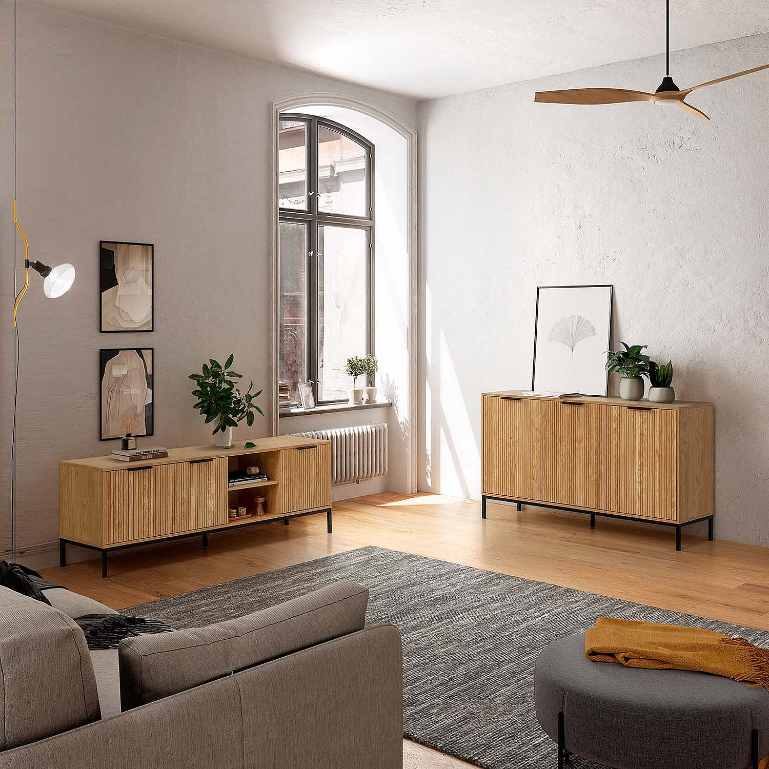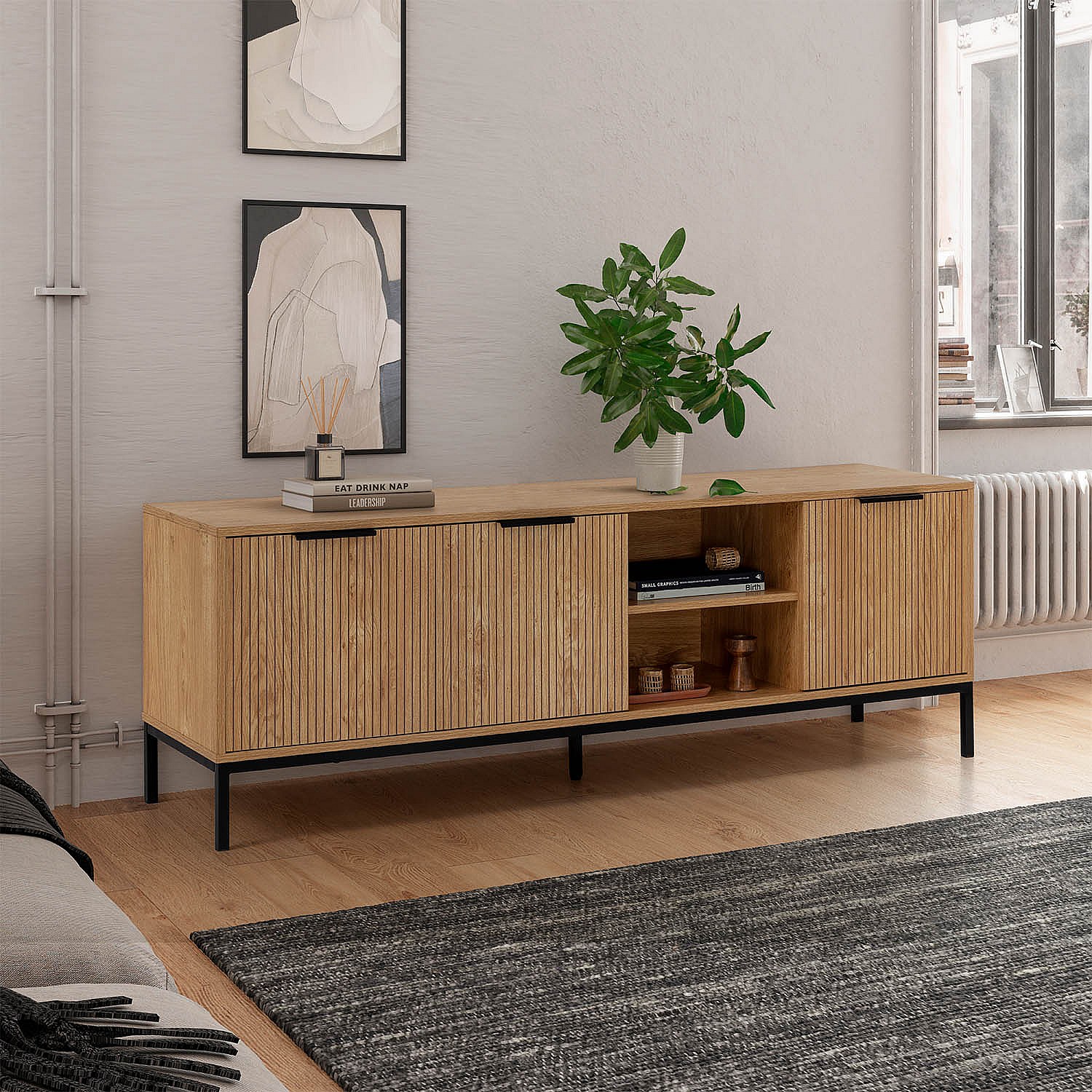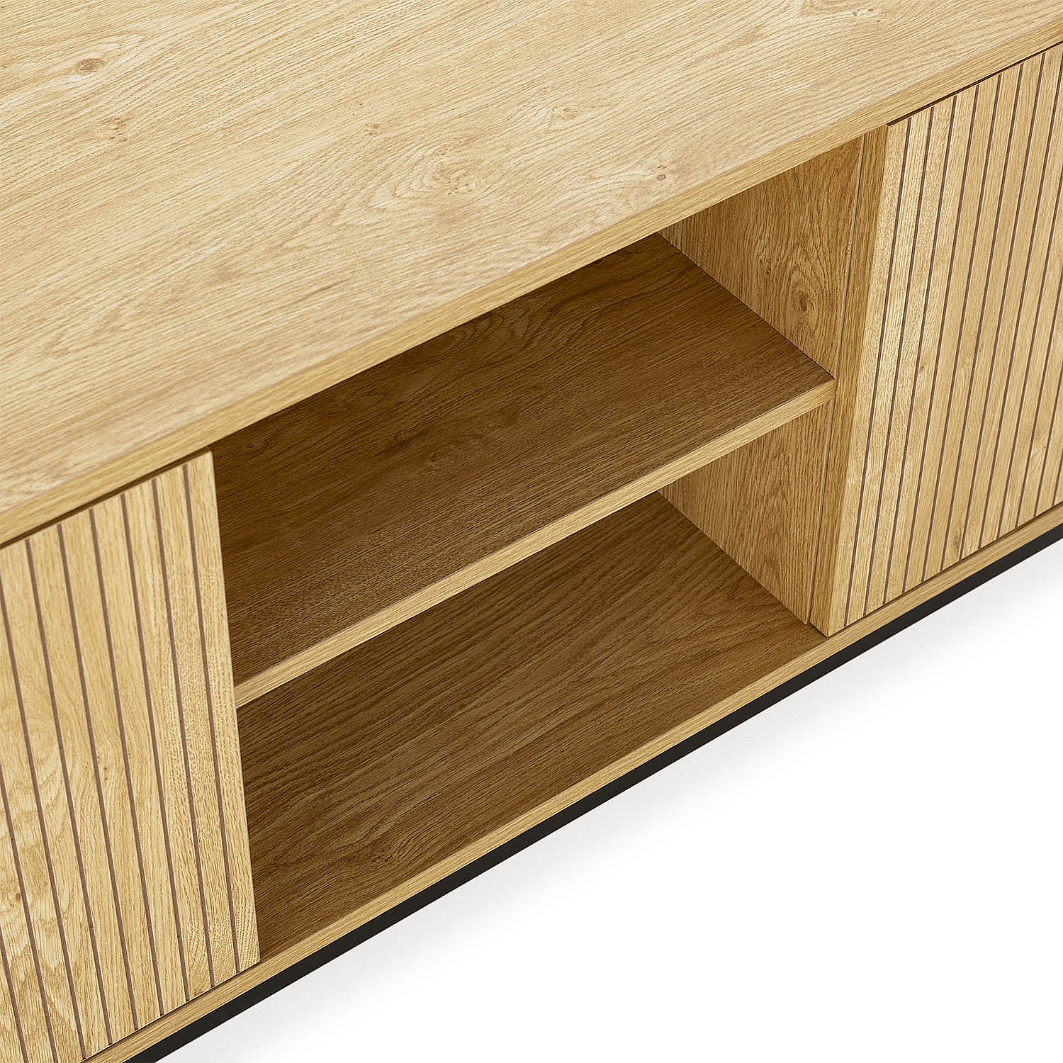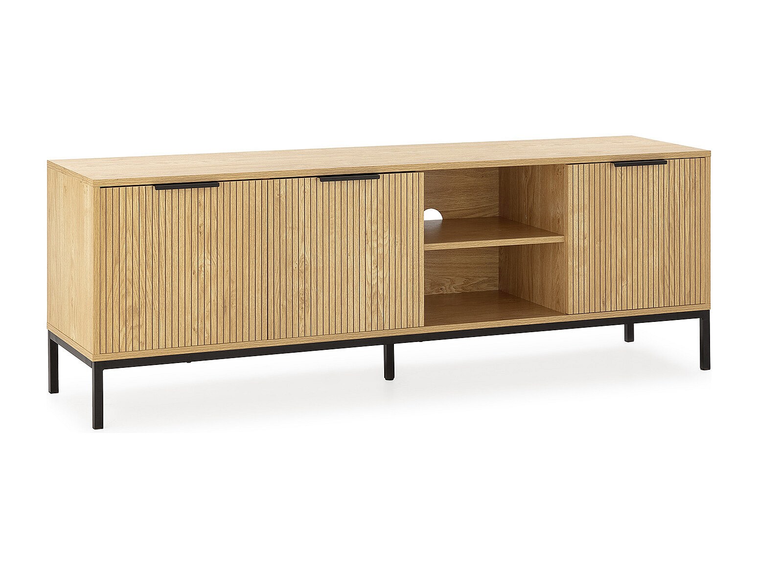 Szafka RTV z 2 drzwiami i 2 wnękami - Płyta wiórowa - Nogi żelazne - Kolor naturalny