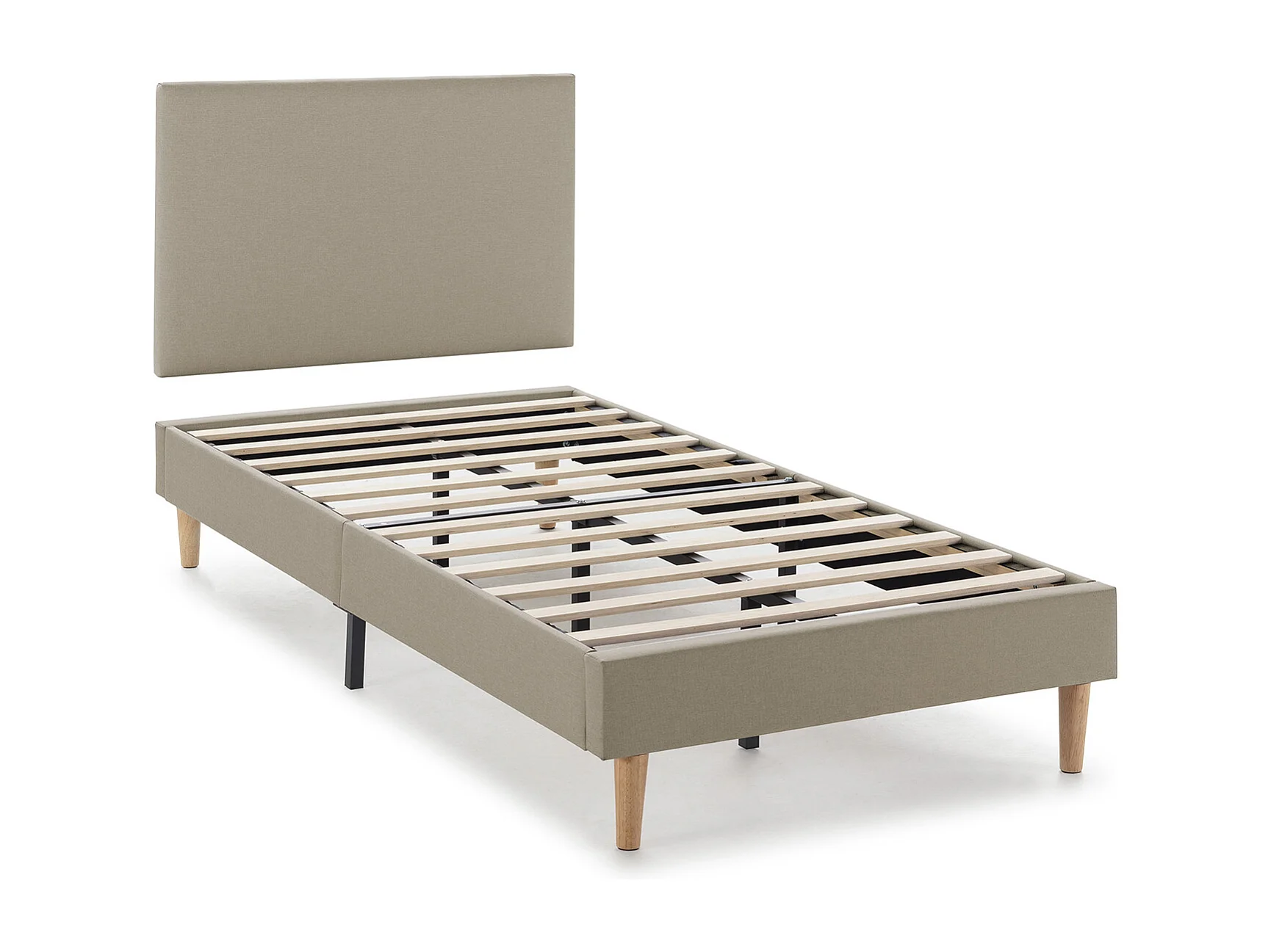 Kolumnowy stelaż tapicerowany Aura + zagłówek 90x190 cm Beżowy, wysokość 30 cm.