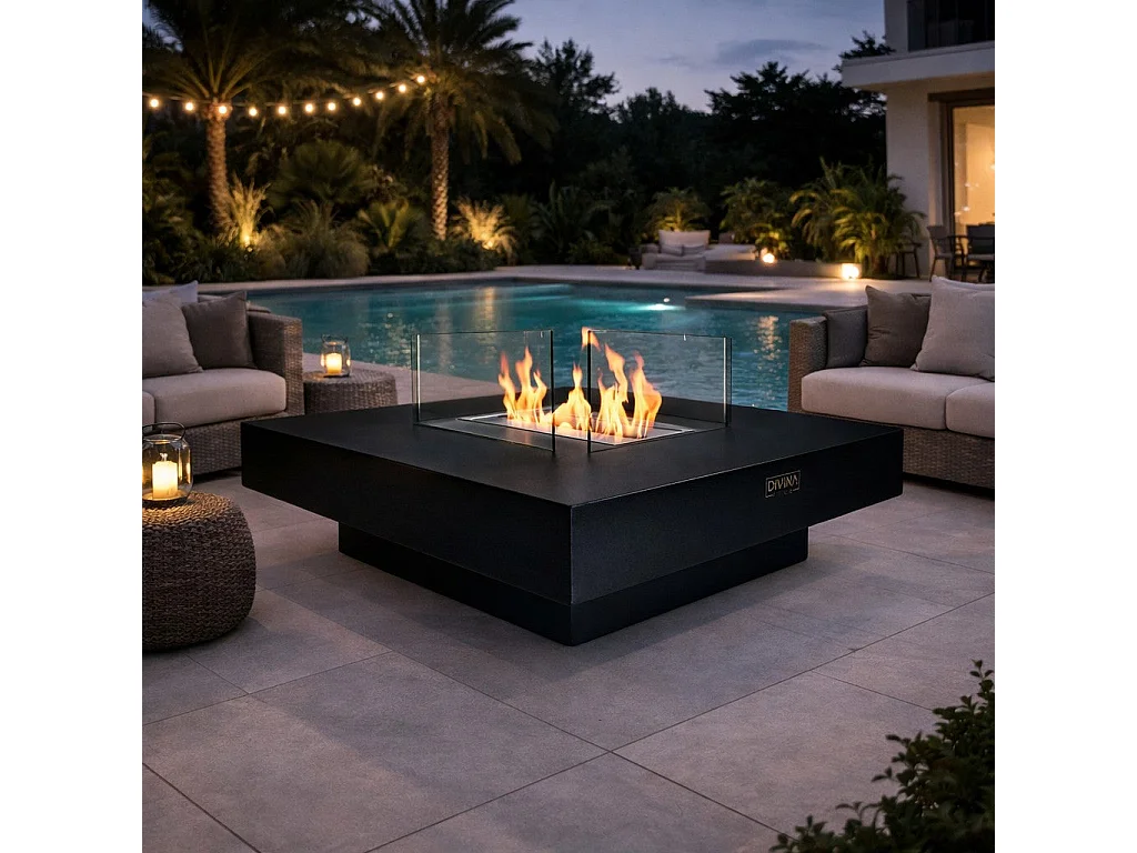Kominek bioetanolowy Panarea Black 70x70x35 do użytku wewnątrz i na zewnątrz, stojący