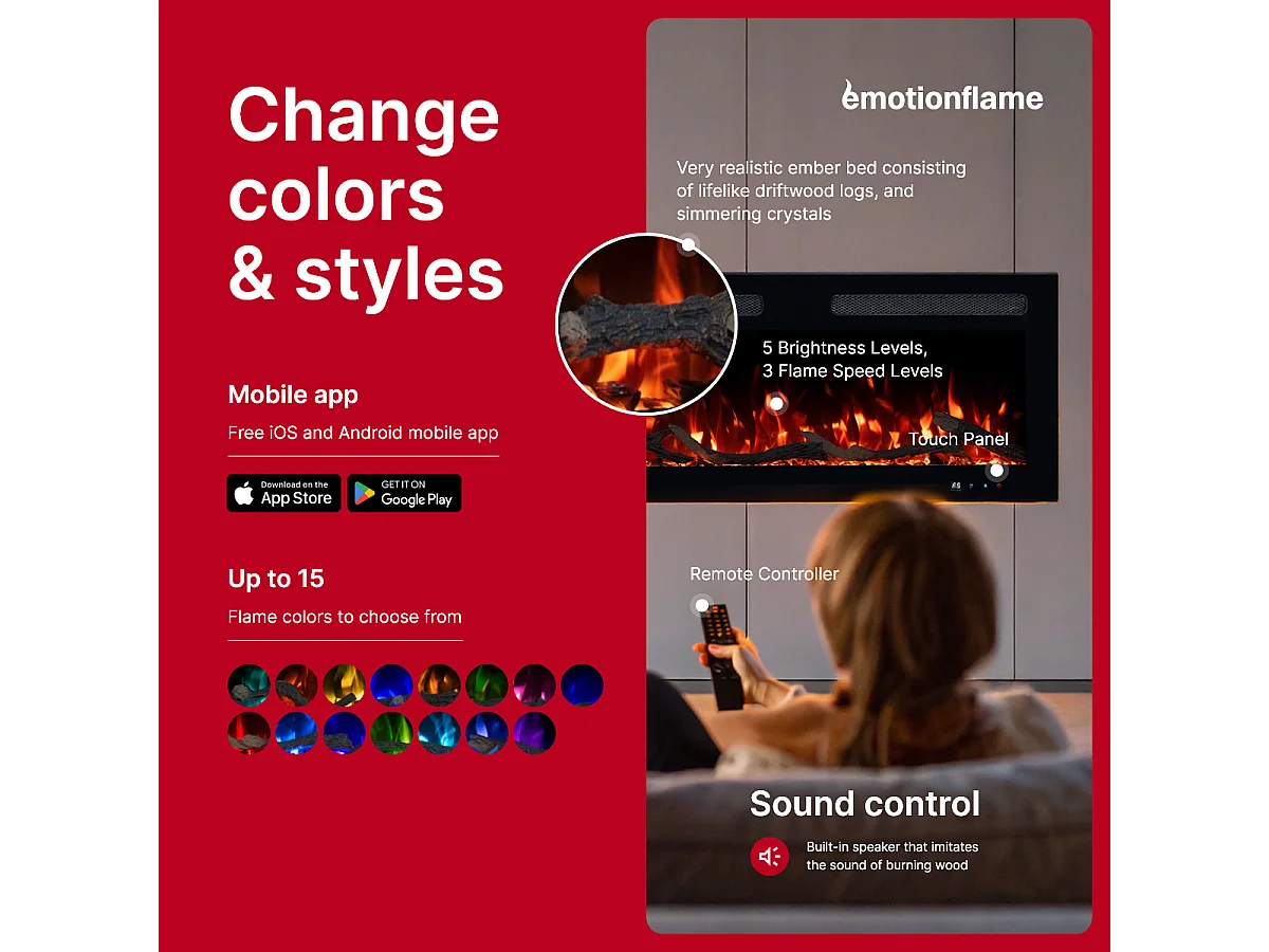 Kominek elektryczny MONARCH 127 - ogień premium - na ścianę i do zabudowy - 127x13x35 cm - kominek LED z grzaniem 900/1800 W