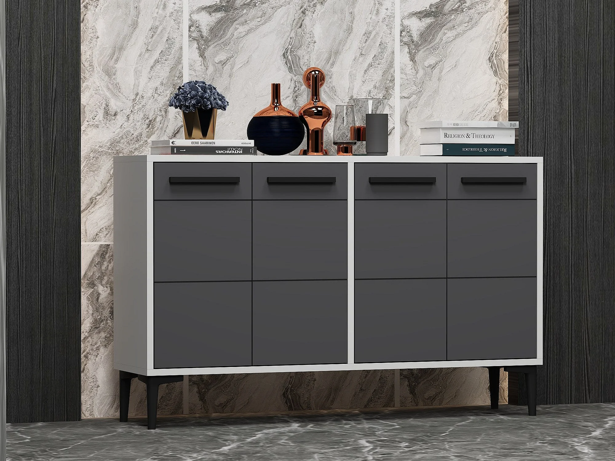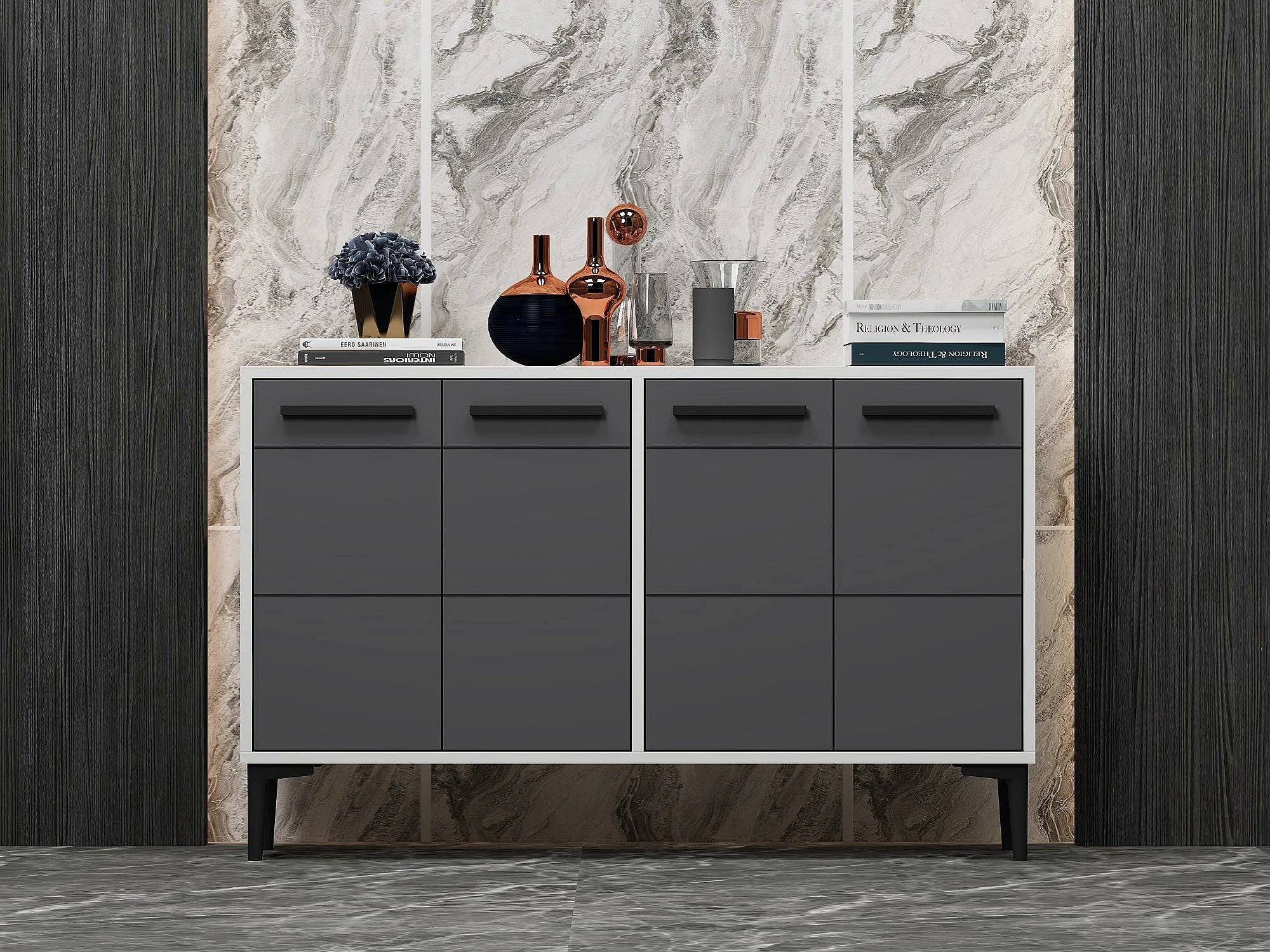 Komoda – 120 cm x 30 cm x 75 cm – biała i antracytowa – MDF