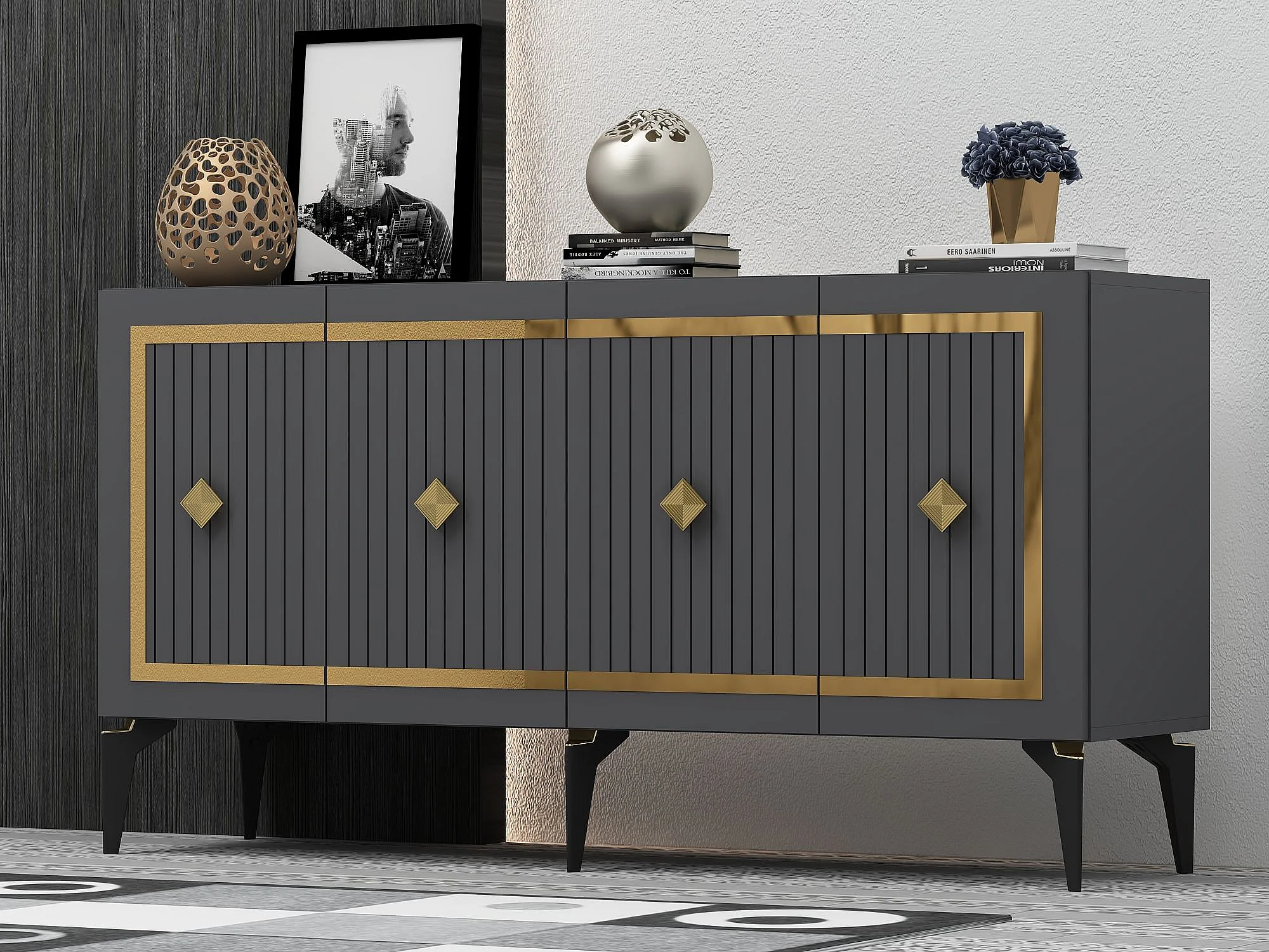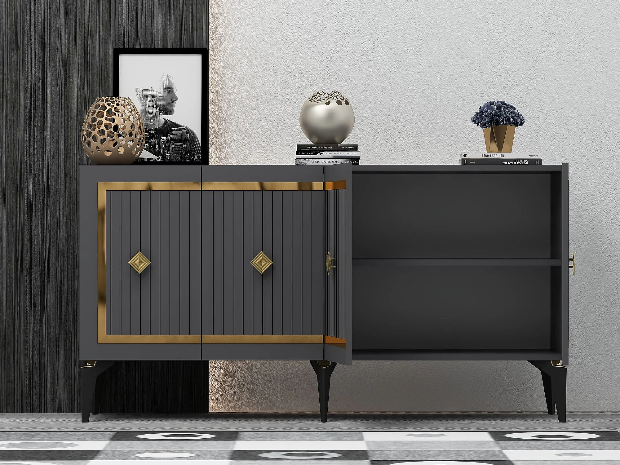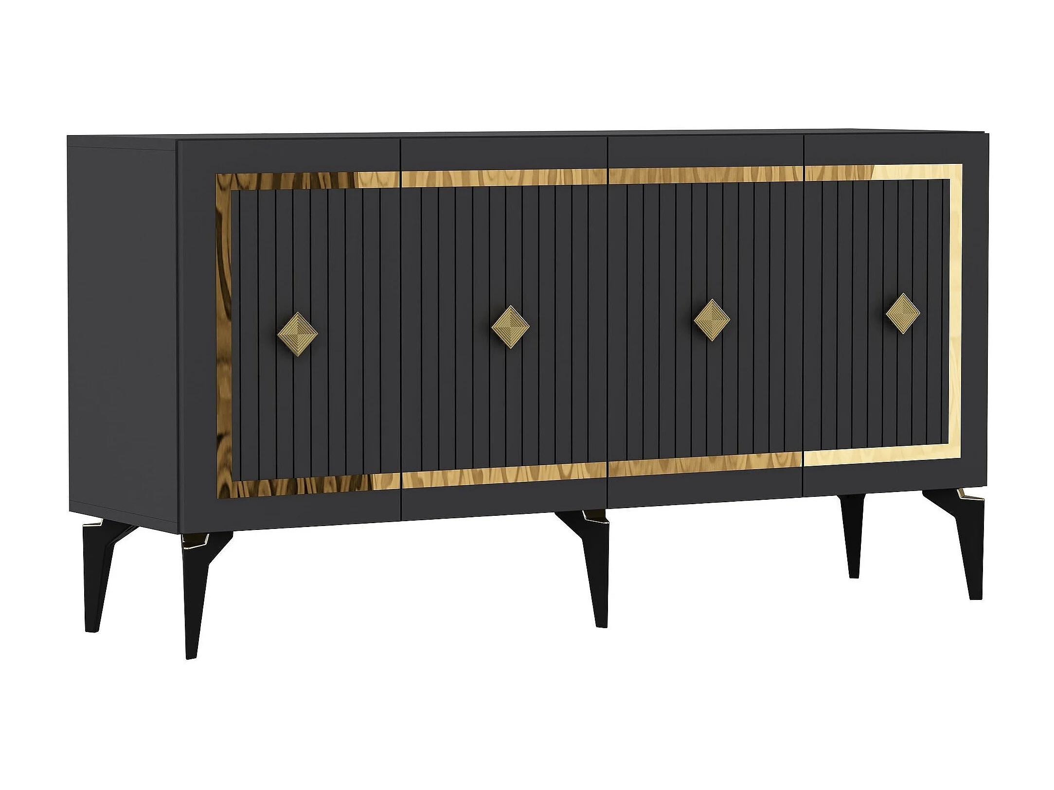 Komoda – 150 cm – Antracyt i złoto – Płyta wiórowa pokryta melaminą