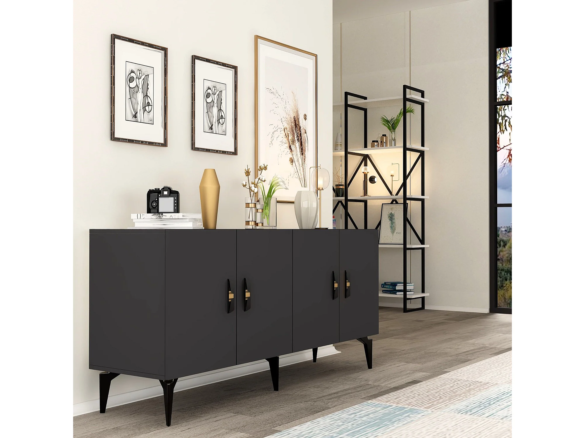 Komoda – 150 cm – Antracyt – Płyta wiórowa pokryta melaminą