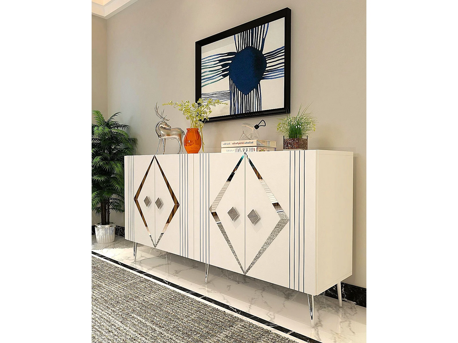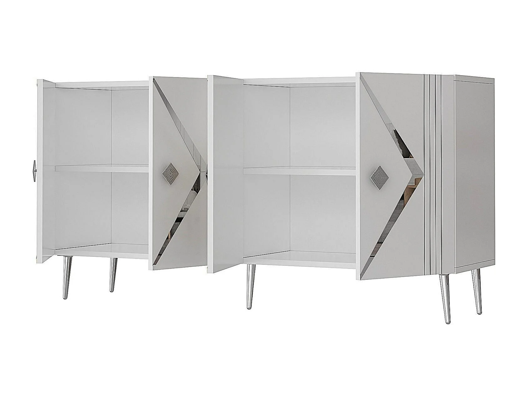Komoda – 150 cm x 75 cm x 35 cm – biała i srebrna – płyta wiórowa