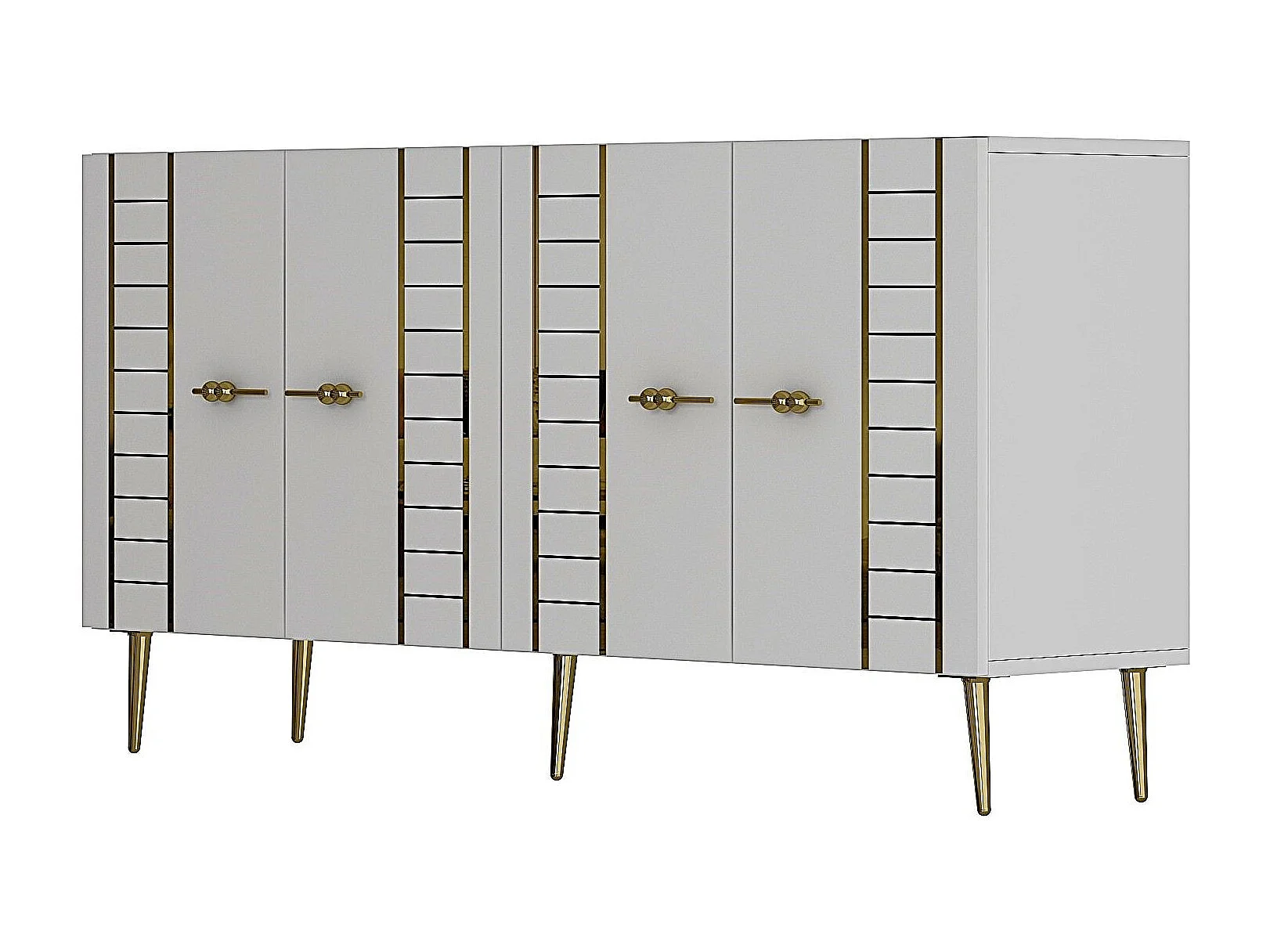Komoda – 150 cm – Biało-złota – Płyta wiórowa