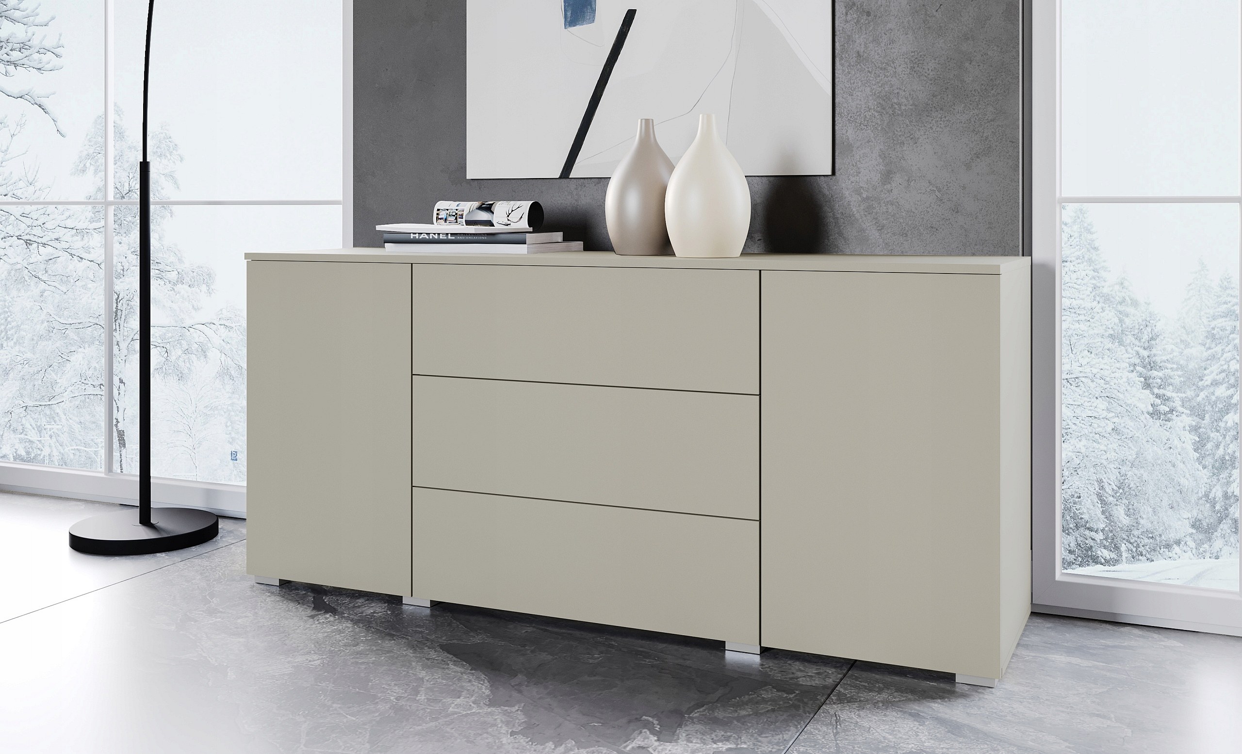 Komoda 150 cm mat do salonu – nowoczesna komoda z szufladami i szafkami kaszmirowy beż