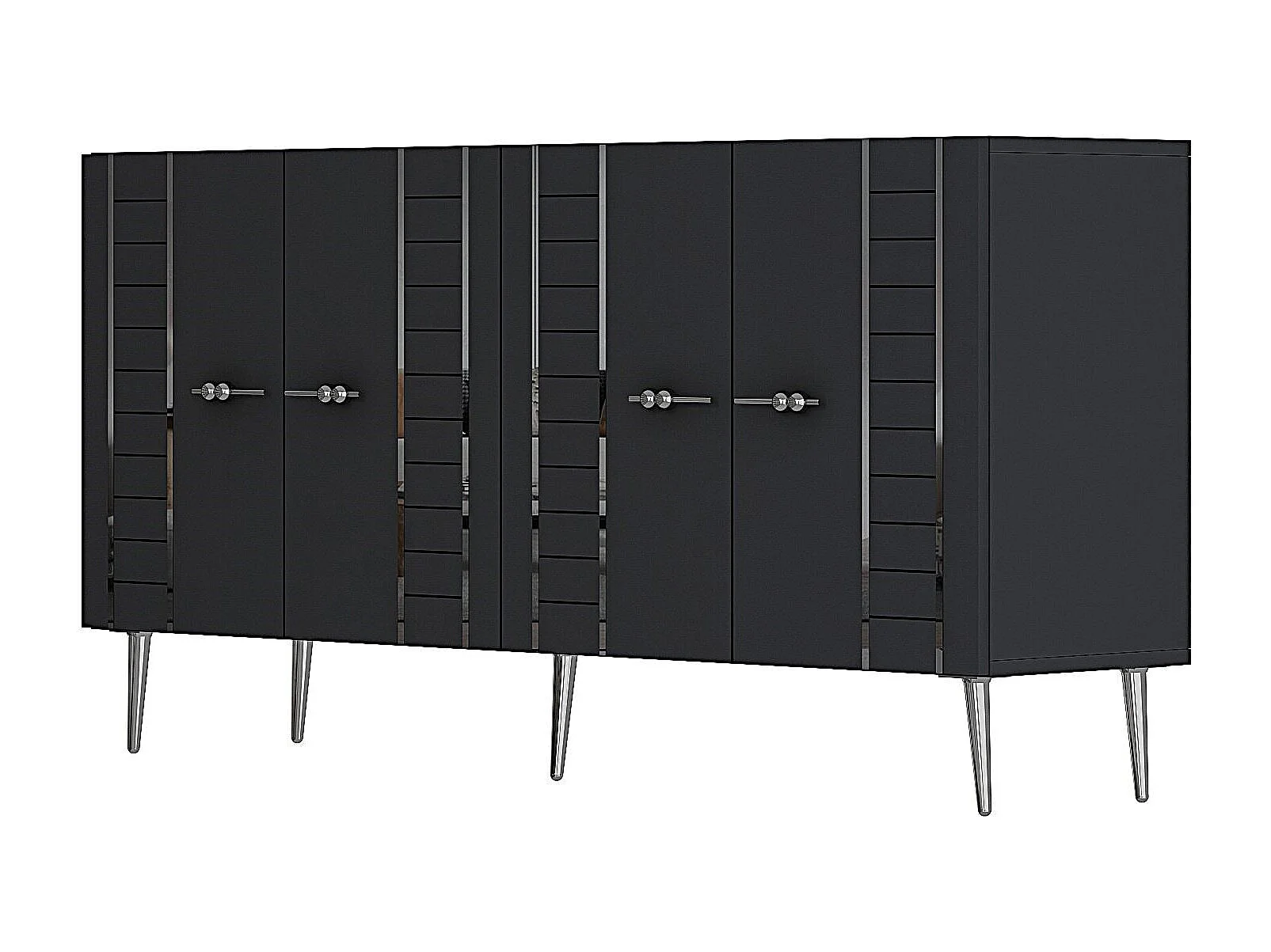 Komoda – 150 cm – Antracyt i srebro – Płyta wiórowa pokryta melaminą