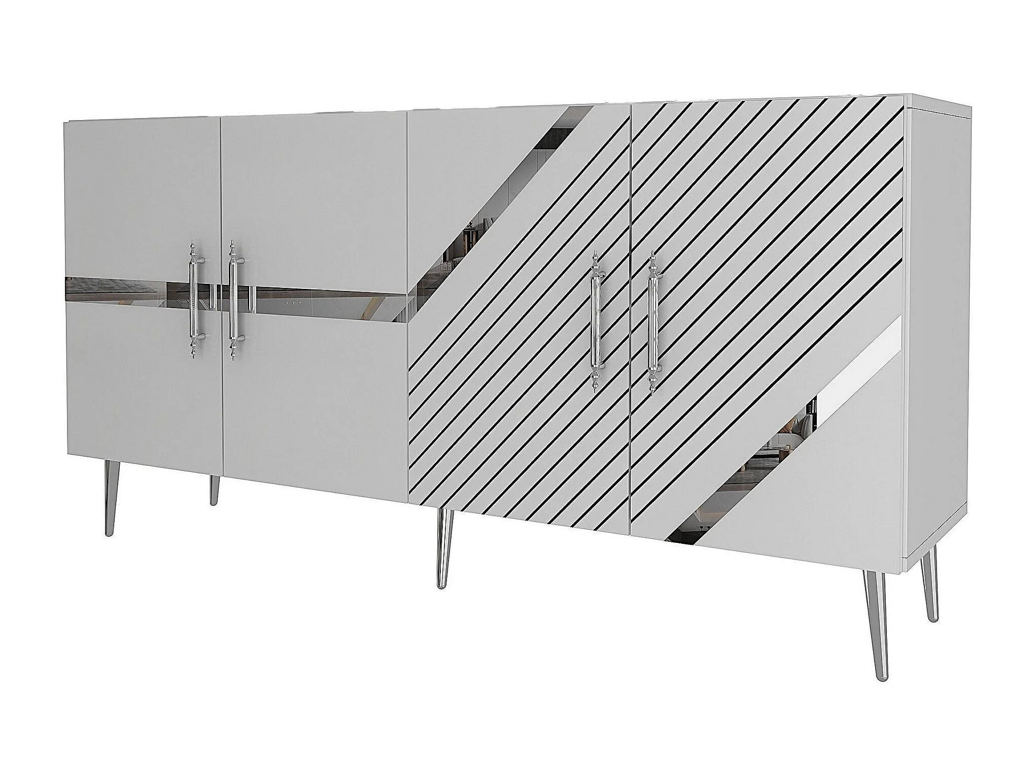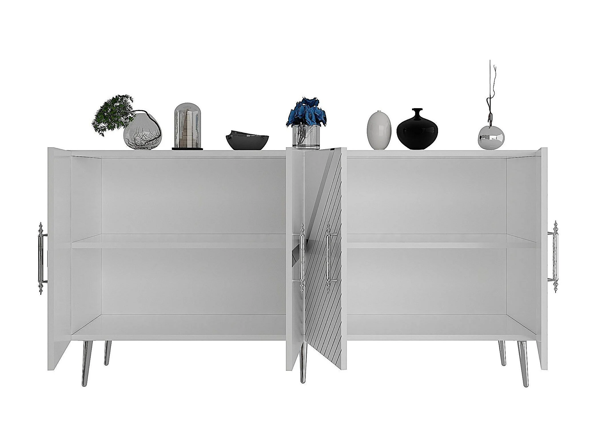 Komoda – 150 cm x 75 cm x 35 cm – biała i srebrna – płyta wiórowa