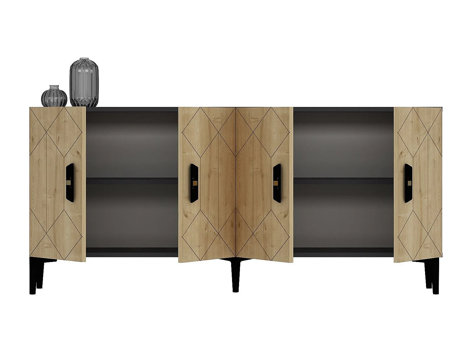 Komoda – 150 cm x 75 cm x 35 cm – Dąb antracytowy i szafirowy – 100% płyta wiórowa