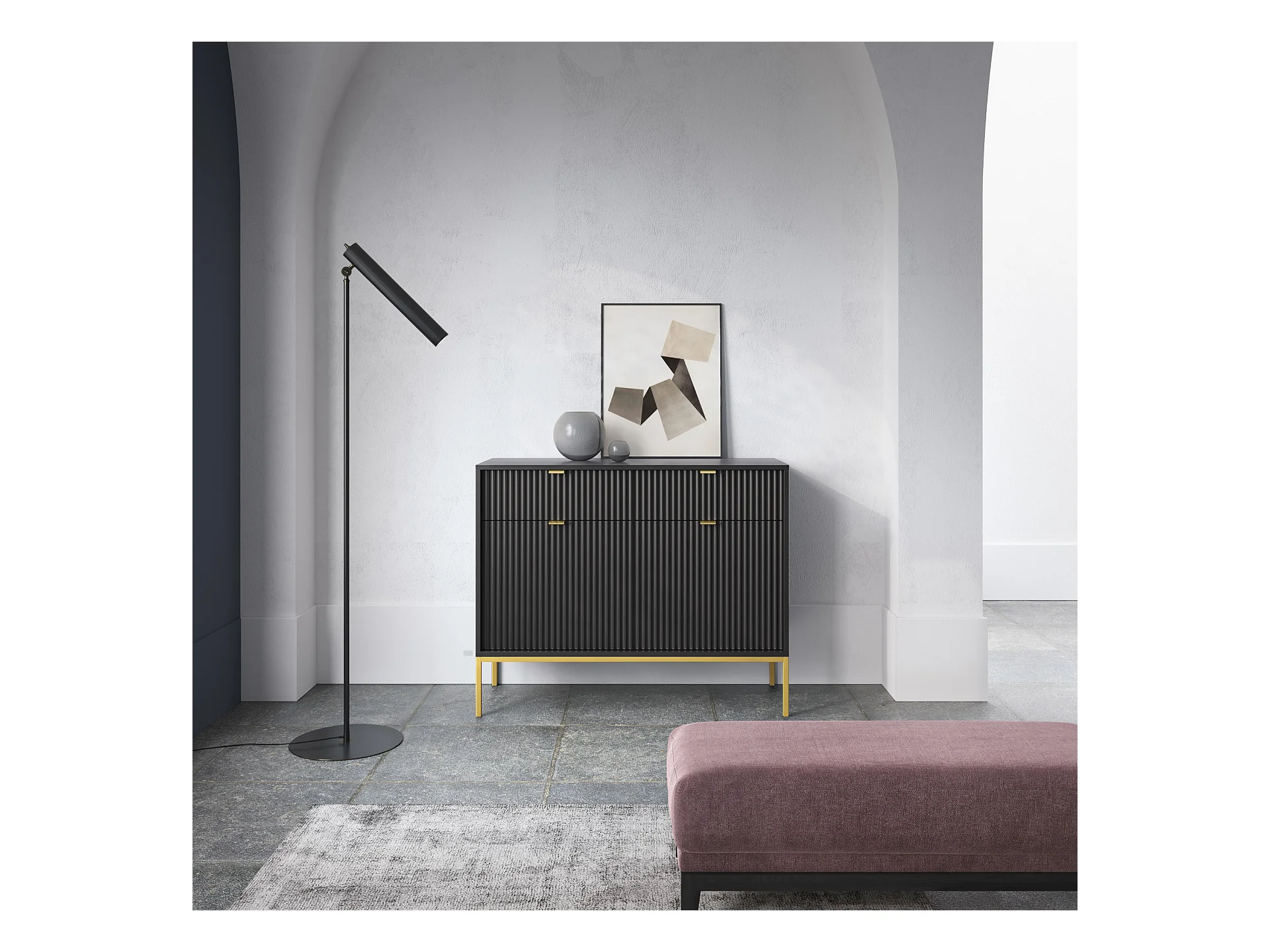 Komoda: 2 szuflady, 2 drzwi, czarna, złota, 104 x 83 x 39 cm, złote uchwyty