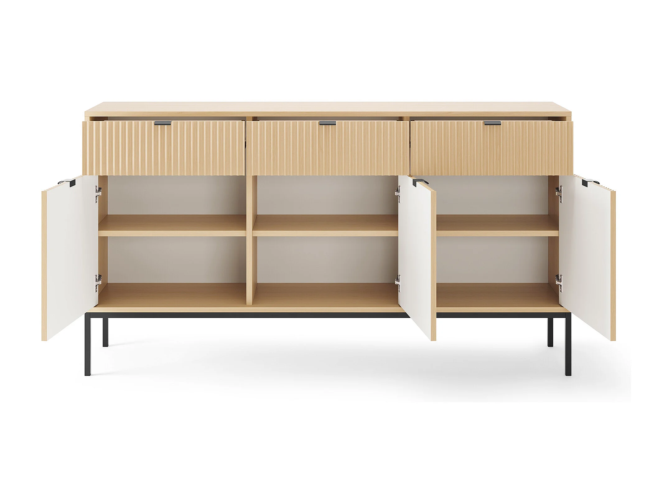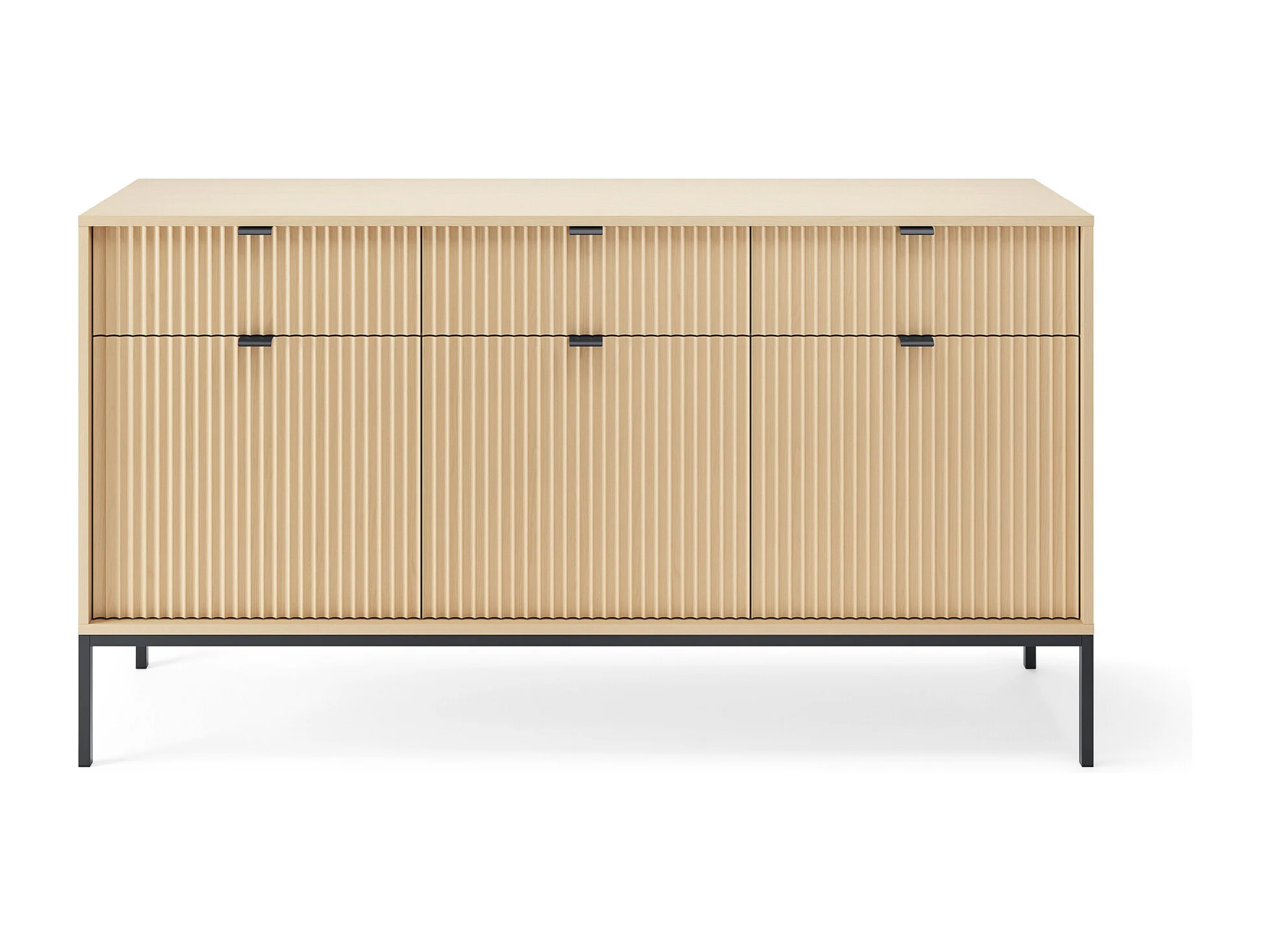 Komoda: 3 szuflady, 3 drzwi, Dąb Vincenza, stelaż czarny, 154 x 83 x 39 cm, uchwyty czarne