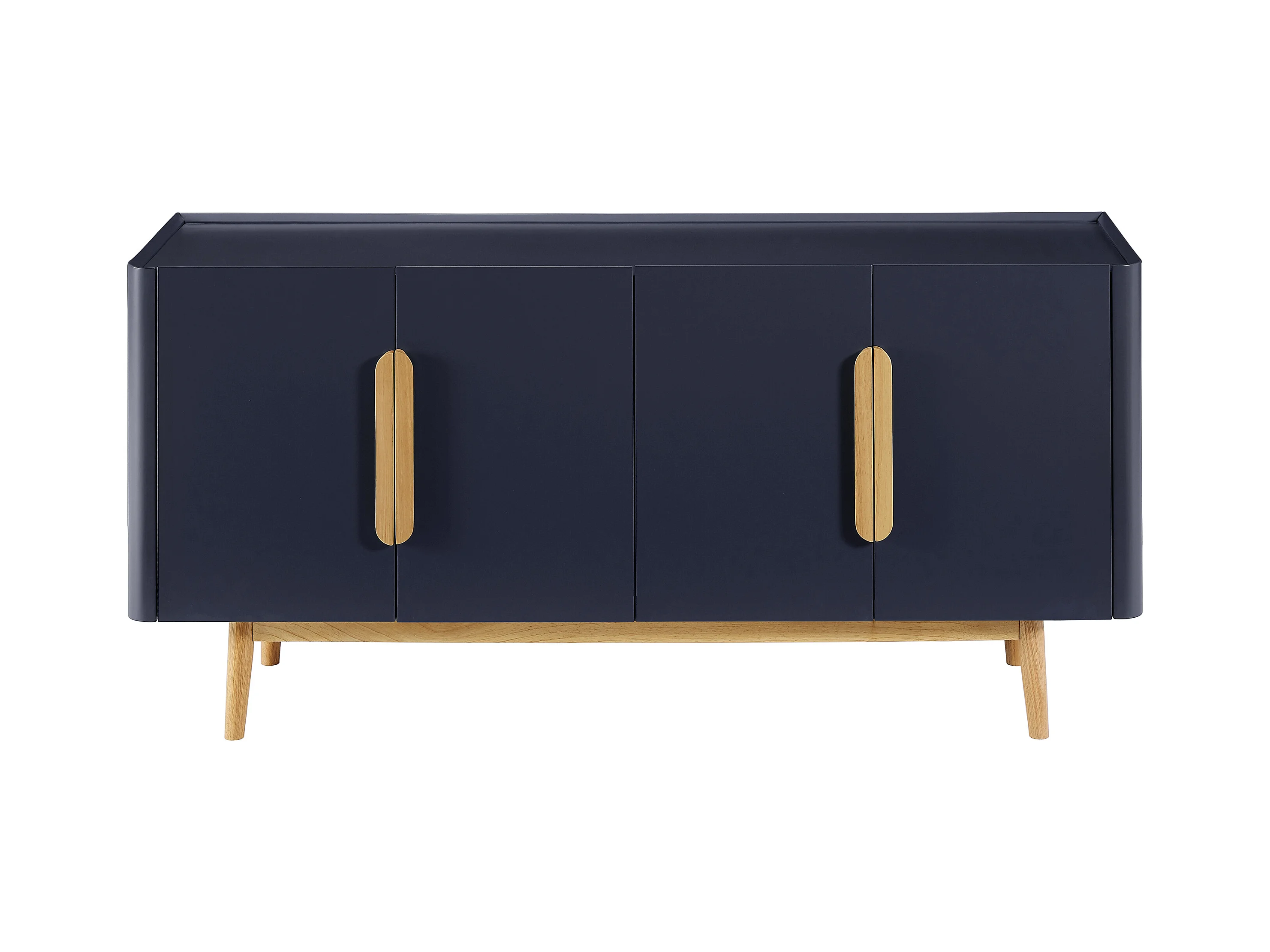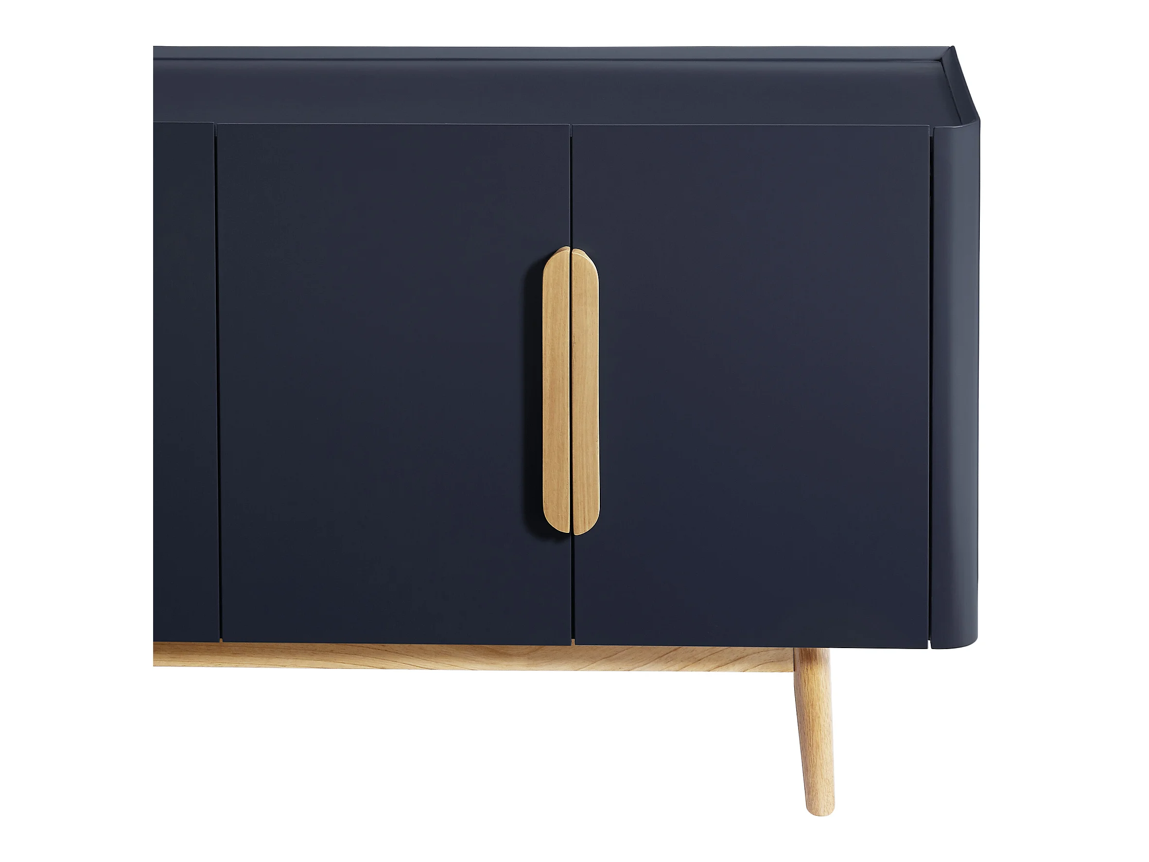 Komoda 4 drzwiowa z MDF i drewna kauczukowego - Niebieski i Naturalny jasny - DUNELON