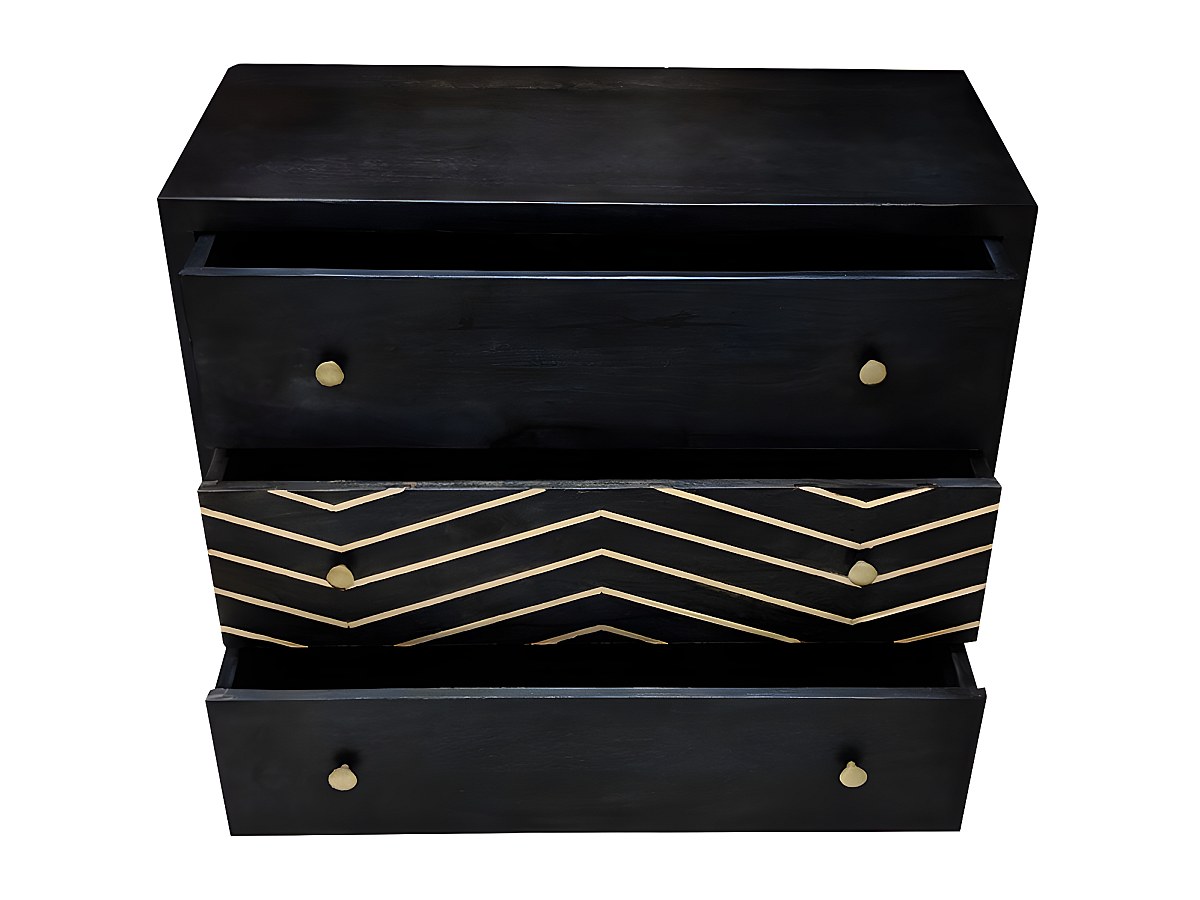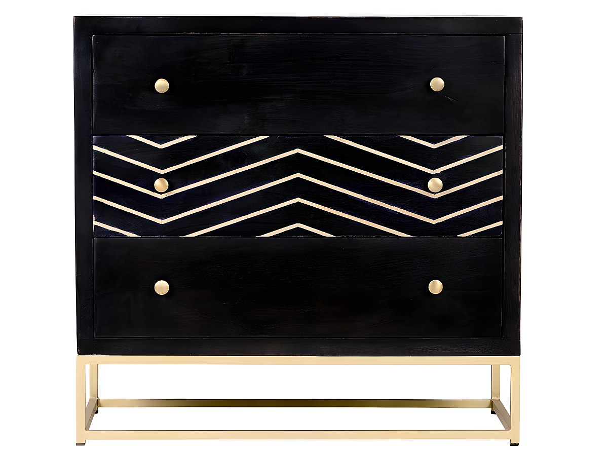Komoda art déco PRISMIN - 3 szuflady - Drewno mangowe i metal - Kolor antracytowy i złoty