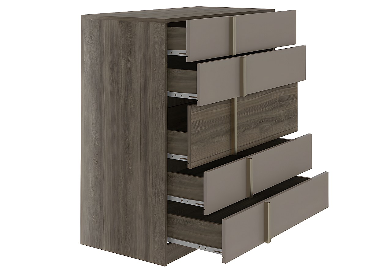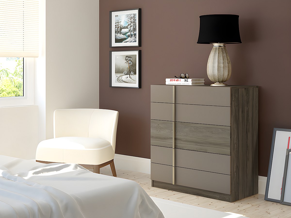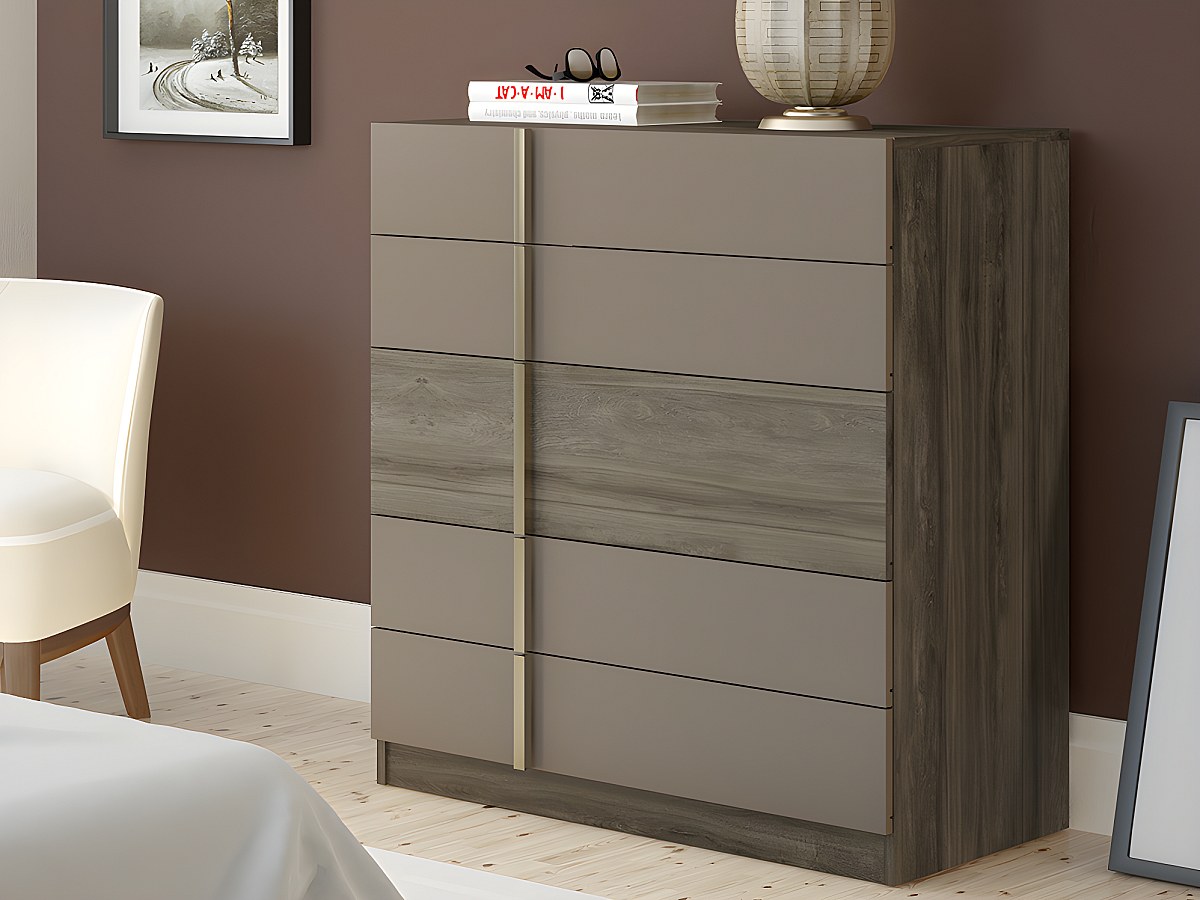 Komoda BODIL - 5 szuflad - Czekoladowy i ciemnoszary