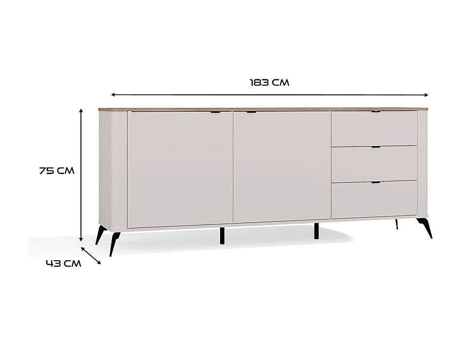 Komoda Cordoba 2D3S | Kaszmir Dąb Castello | 183x43x75 cm | Cichy domyk, Szuflady