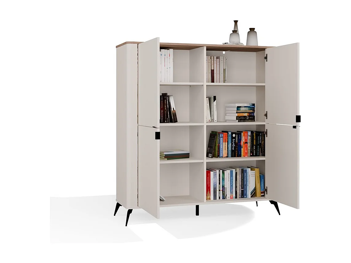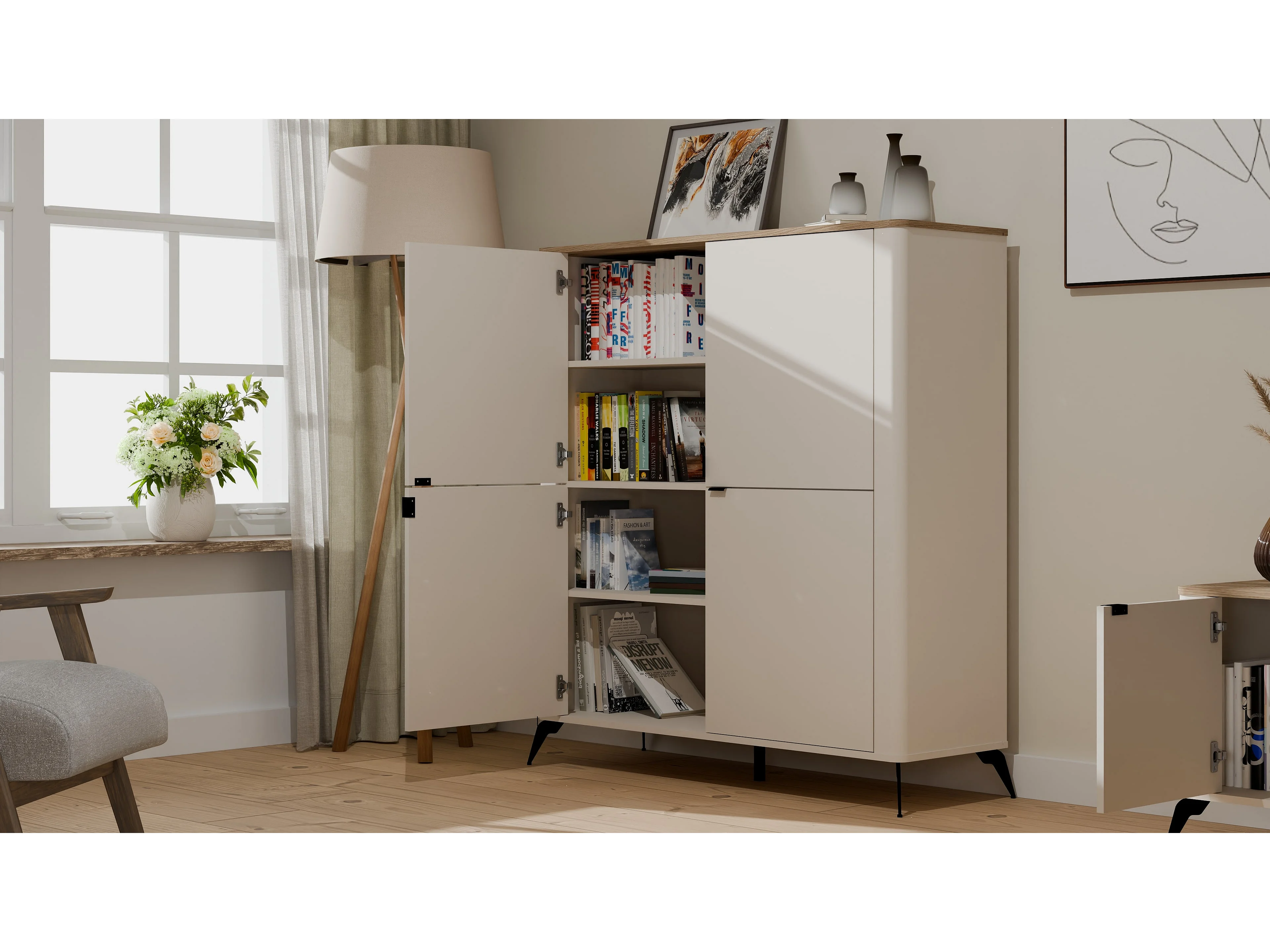 Komoda CORDOBA 4D | Kaszmir Dąb Castello | 125x43x135 cm | 8 Półek Salon