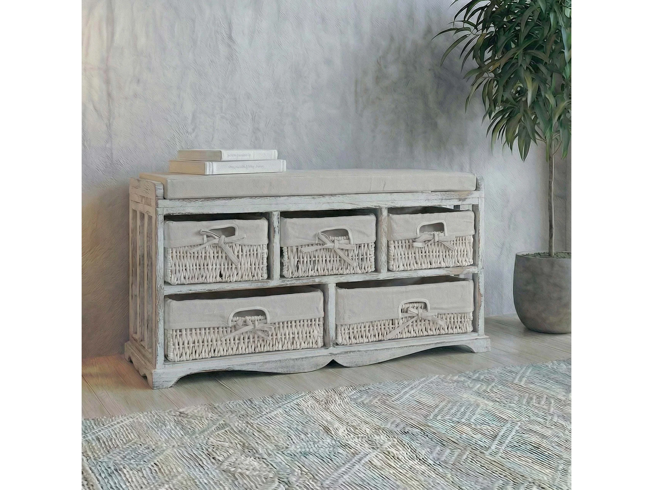 Komoda i ławka z 5 szufladami, biała