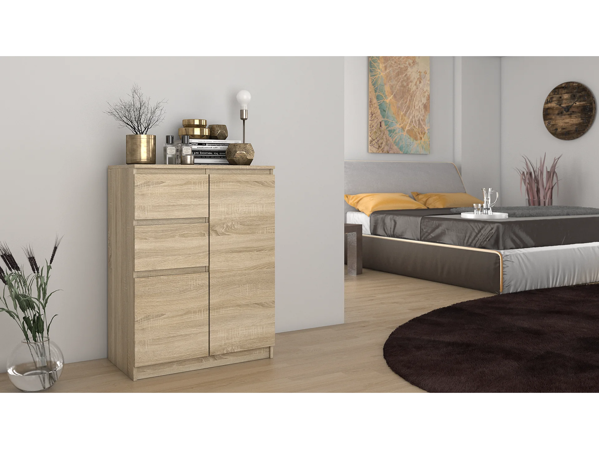 Komoda Malwa 2D2S | Dąb Sonoma | 70x40x97 cm | 2 Drzwi 2 Szuflady