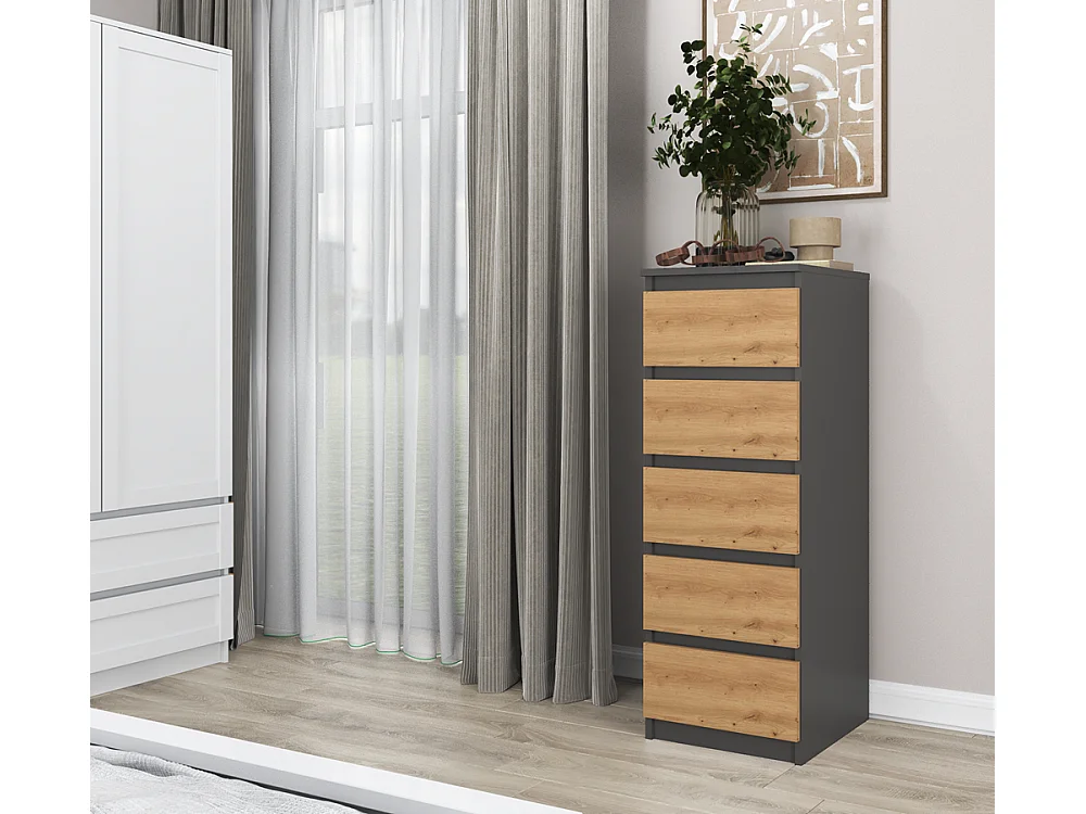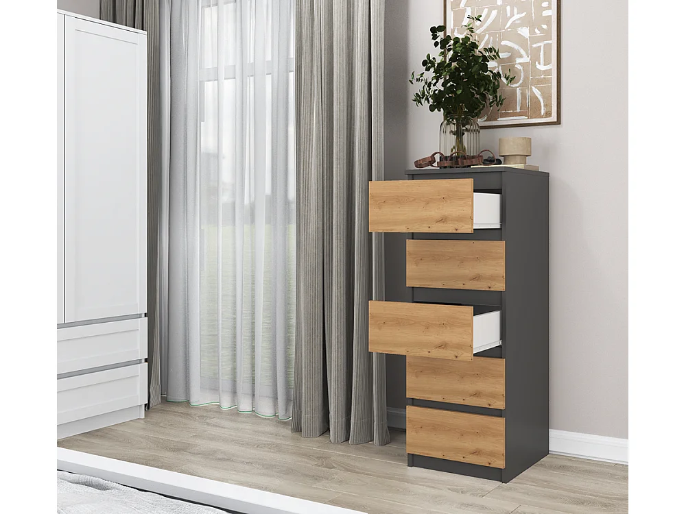 Komoda Malwa W5 | Antracyt/Dąb Artisan | 40x45x111 cm | Komoda z 5 Szufladami
