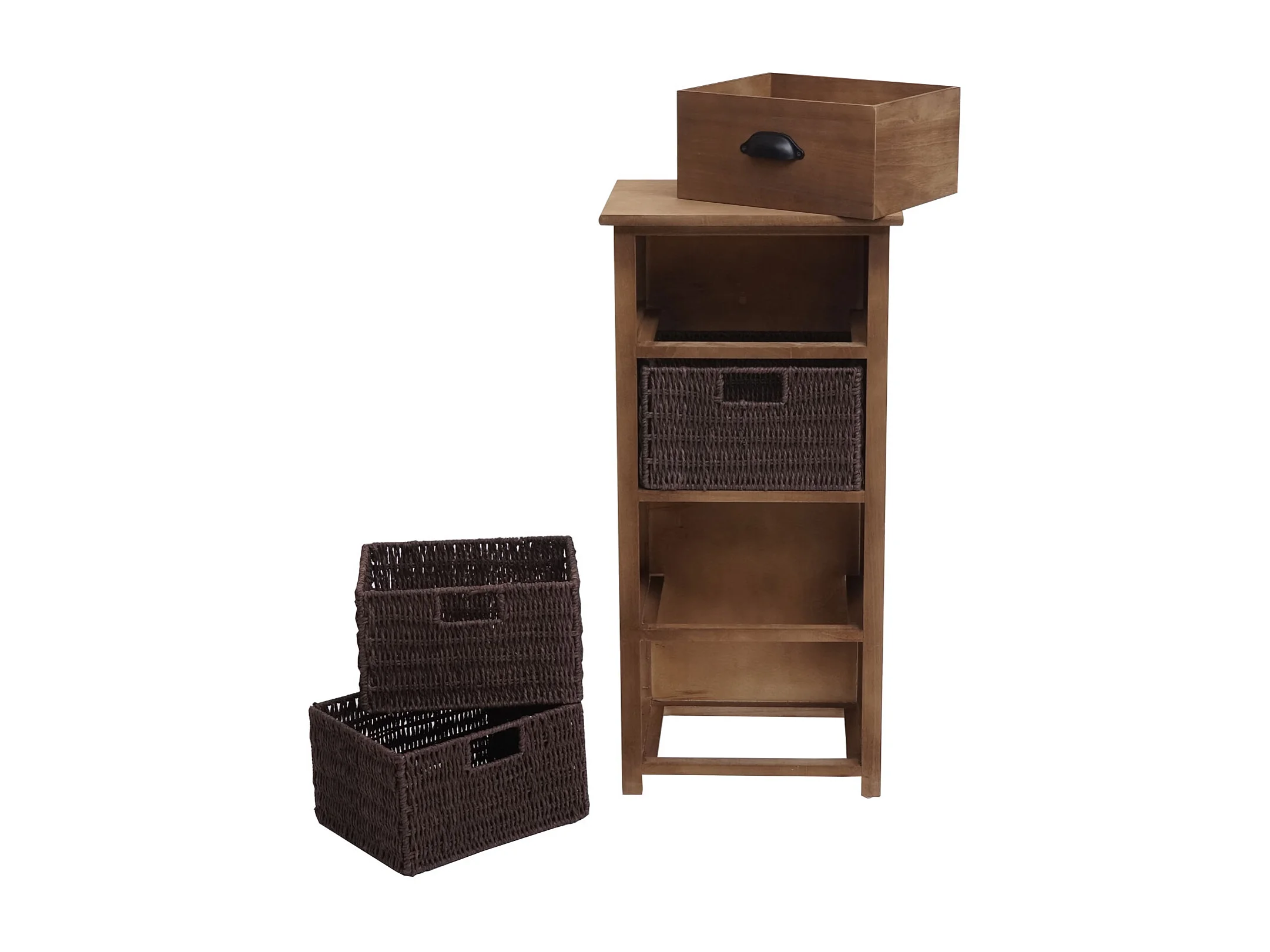 Komoda MCW-K84 z szufladami i koszykami, ciemny brąz, kosze ciemny brąz