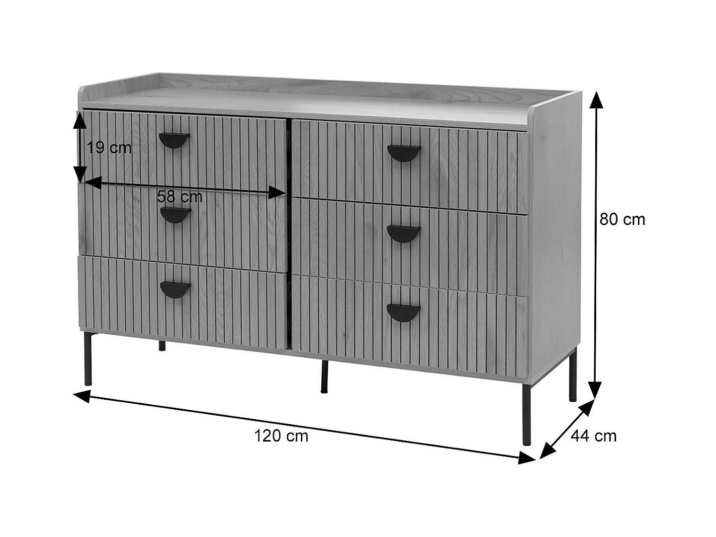 Komoda z 6 szufladami - 120 x 40 x 85 cm - Nogi metalowe + płyty wiórowe - do salonu, sypialni - Kremowo-biały
