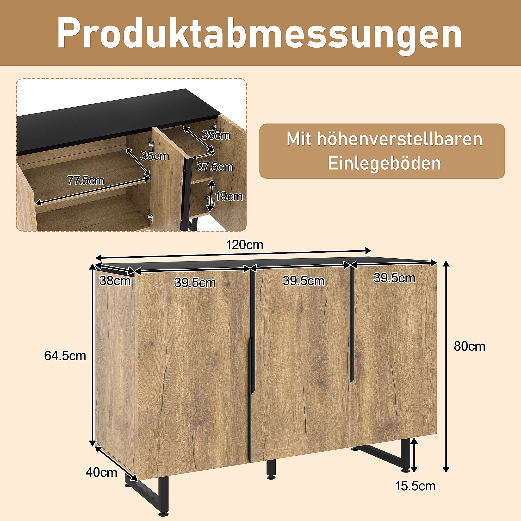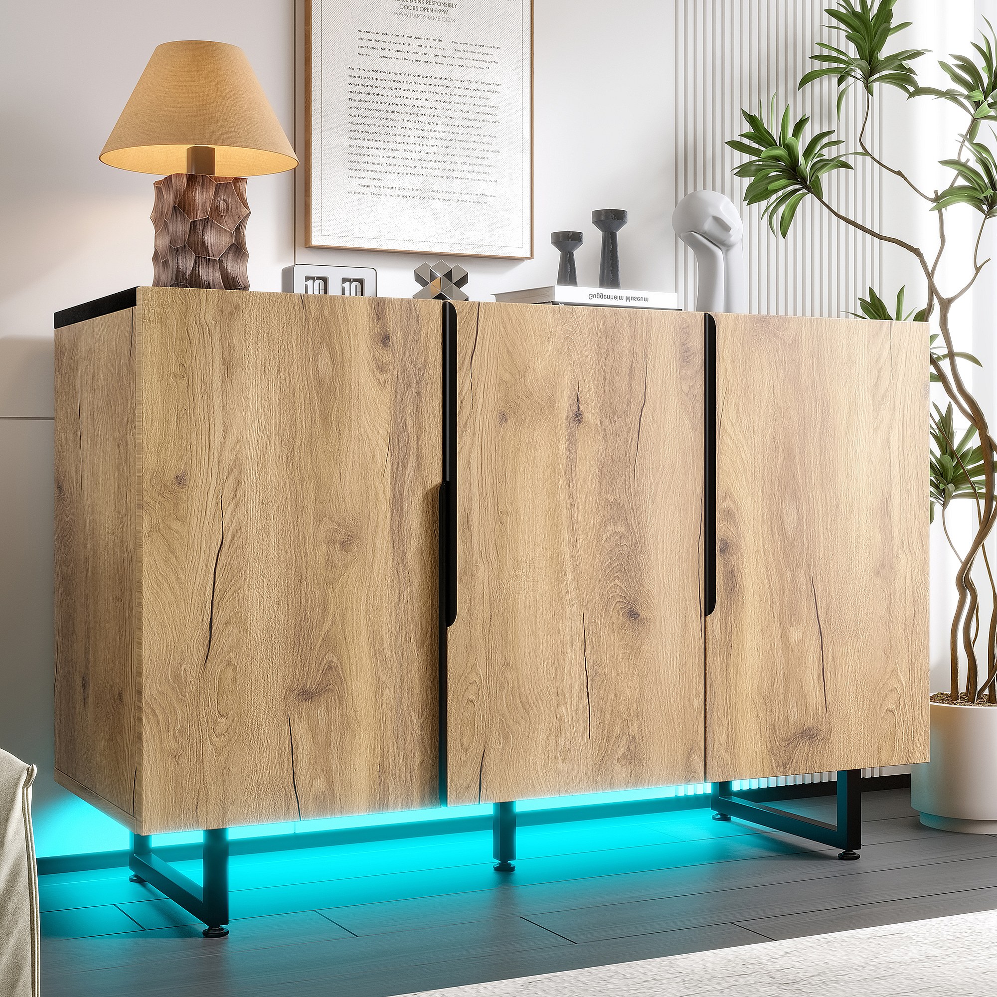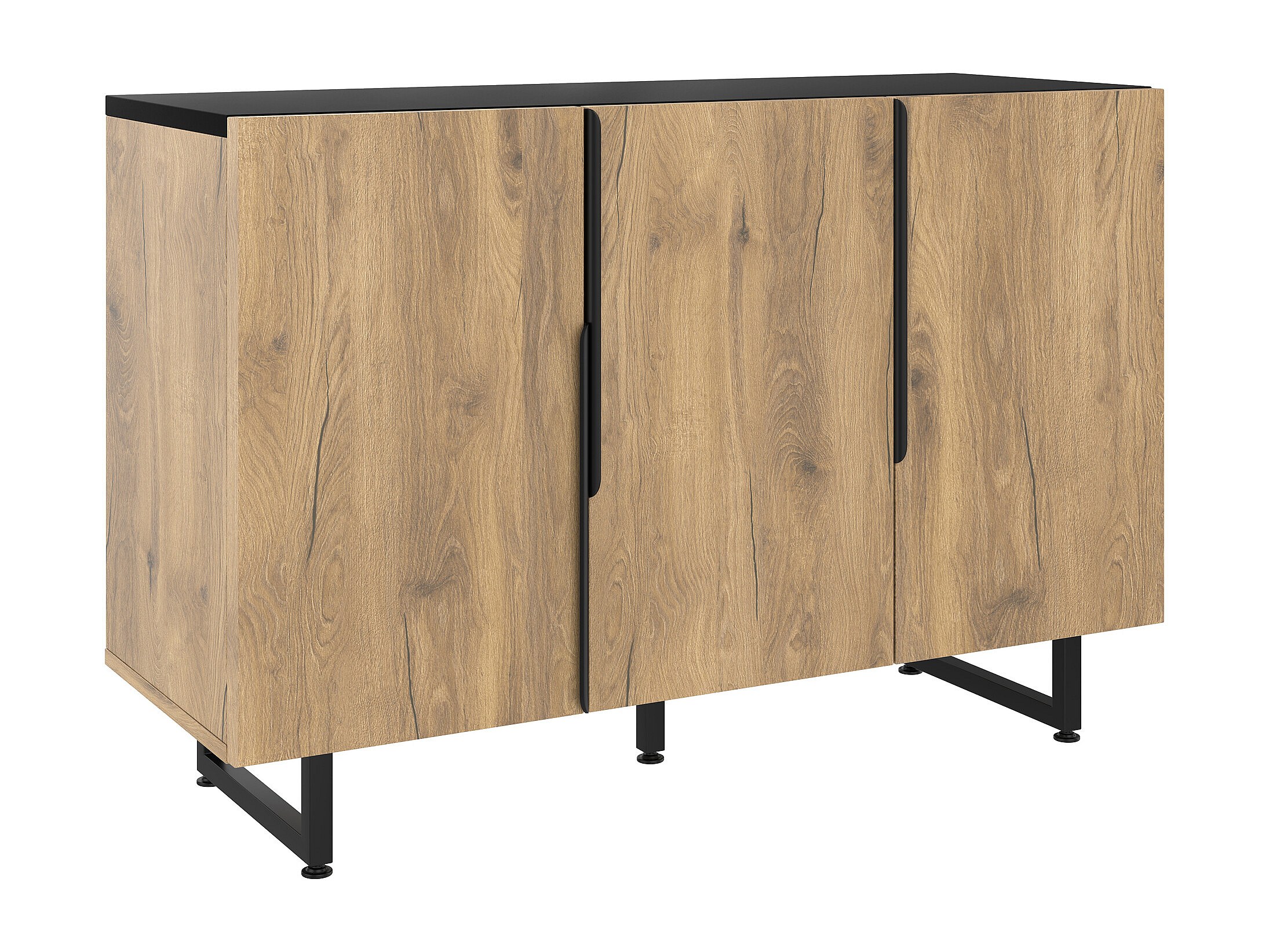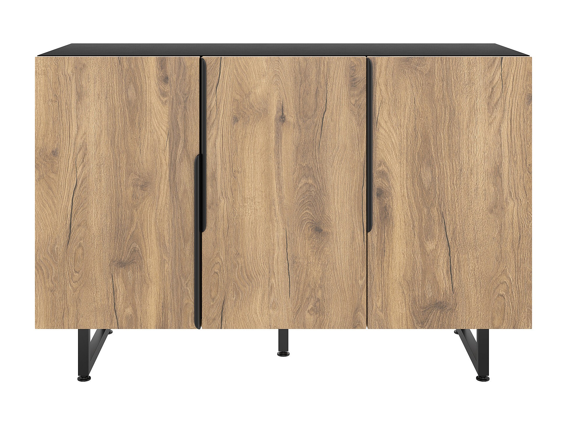 Komoda naturalna z regulowanymi nogami i regulowanymi półkami, oświetlenie LED - czarne uchwyty