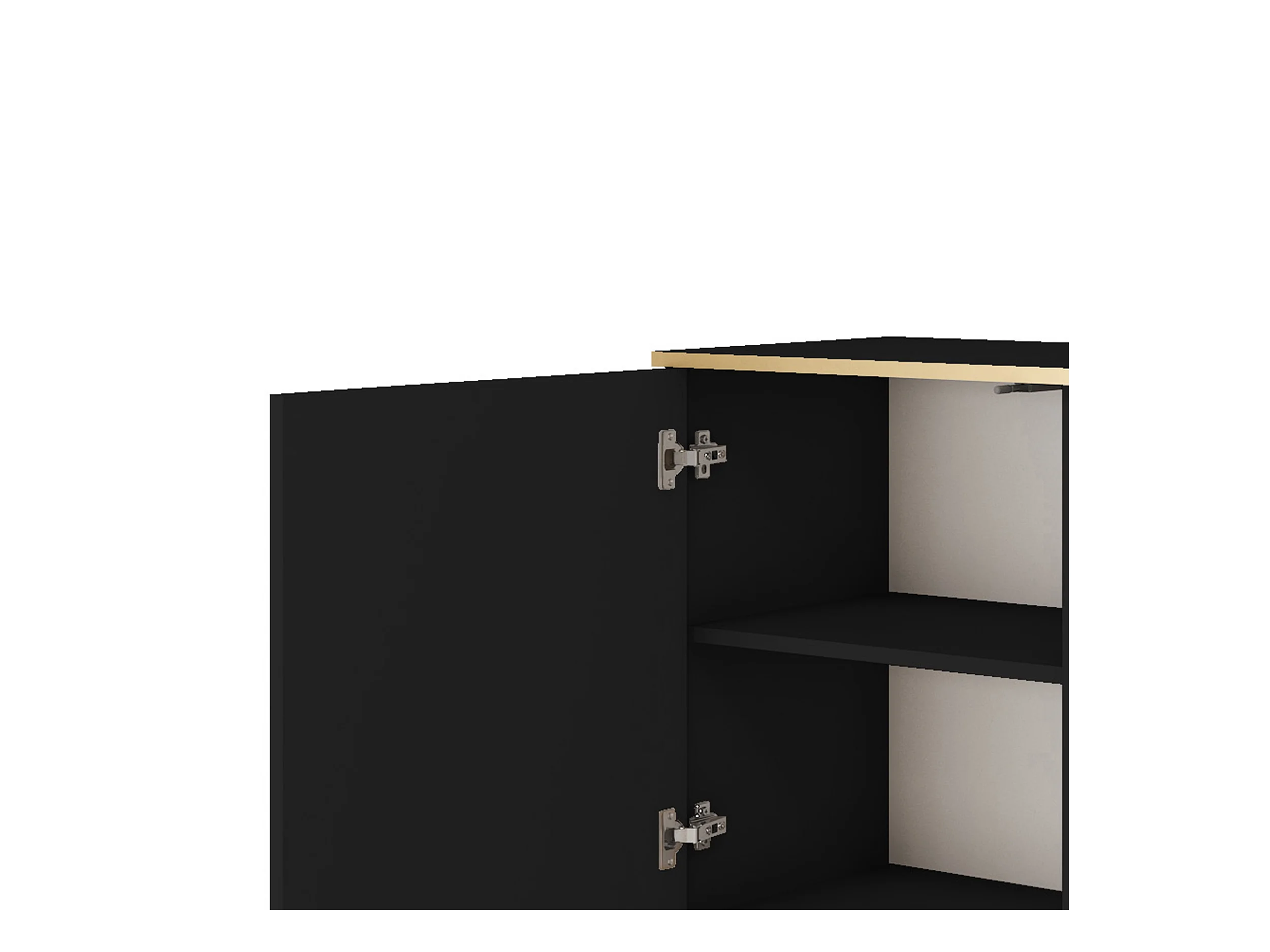 Komoda Wysoka Geriffelt NOVA – 2 drzwi, Highboard z złotymi uchwytami, Czarny, czarne nogi 125x104x39cm - Elegancka do salonu