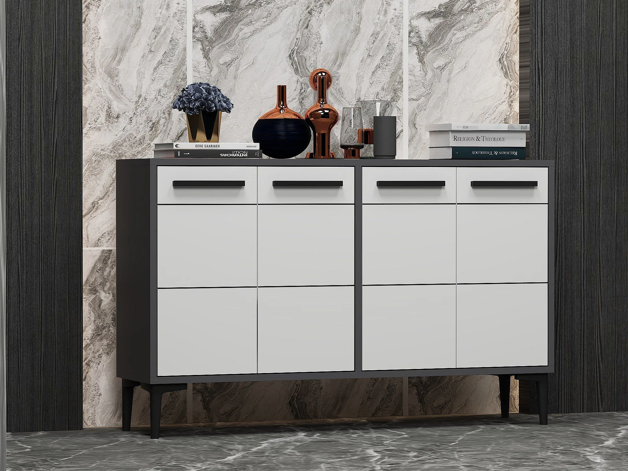 Komoda RTV – 120 cm x 30 cm x 75 cm – Antracyt i biel – Płyta wiórowa pokryta melaminą