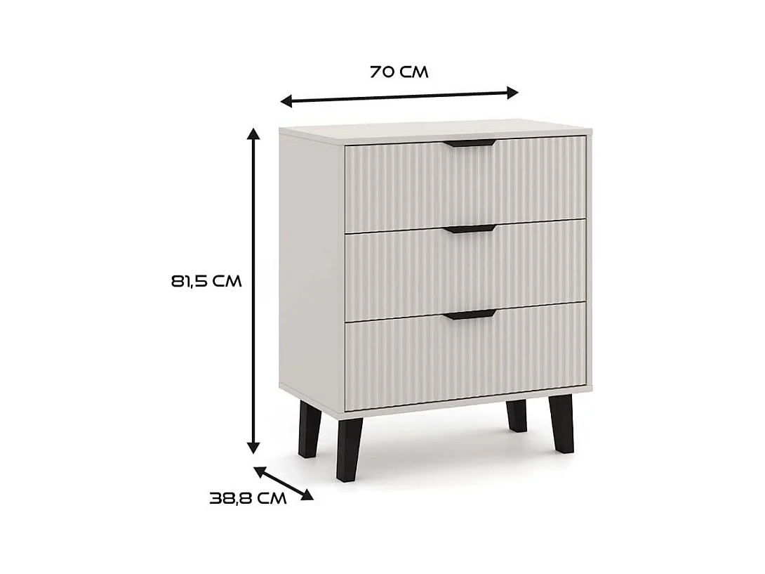 Komoda Scandi 3S Slim| Kaszmir| 70x39x81.5 cm | Nowoczesny Design