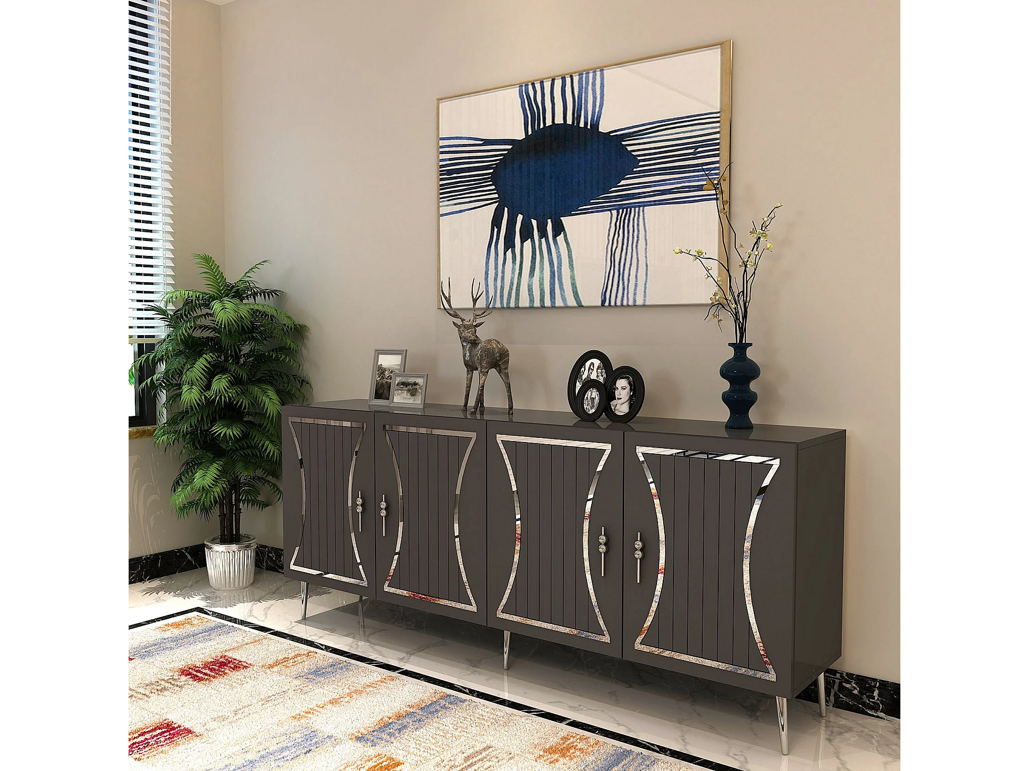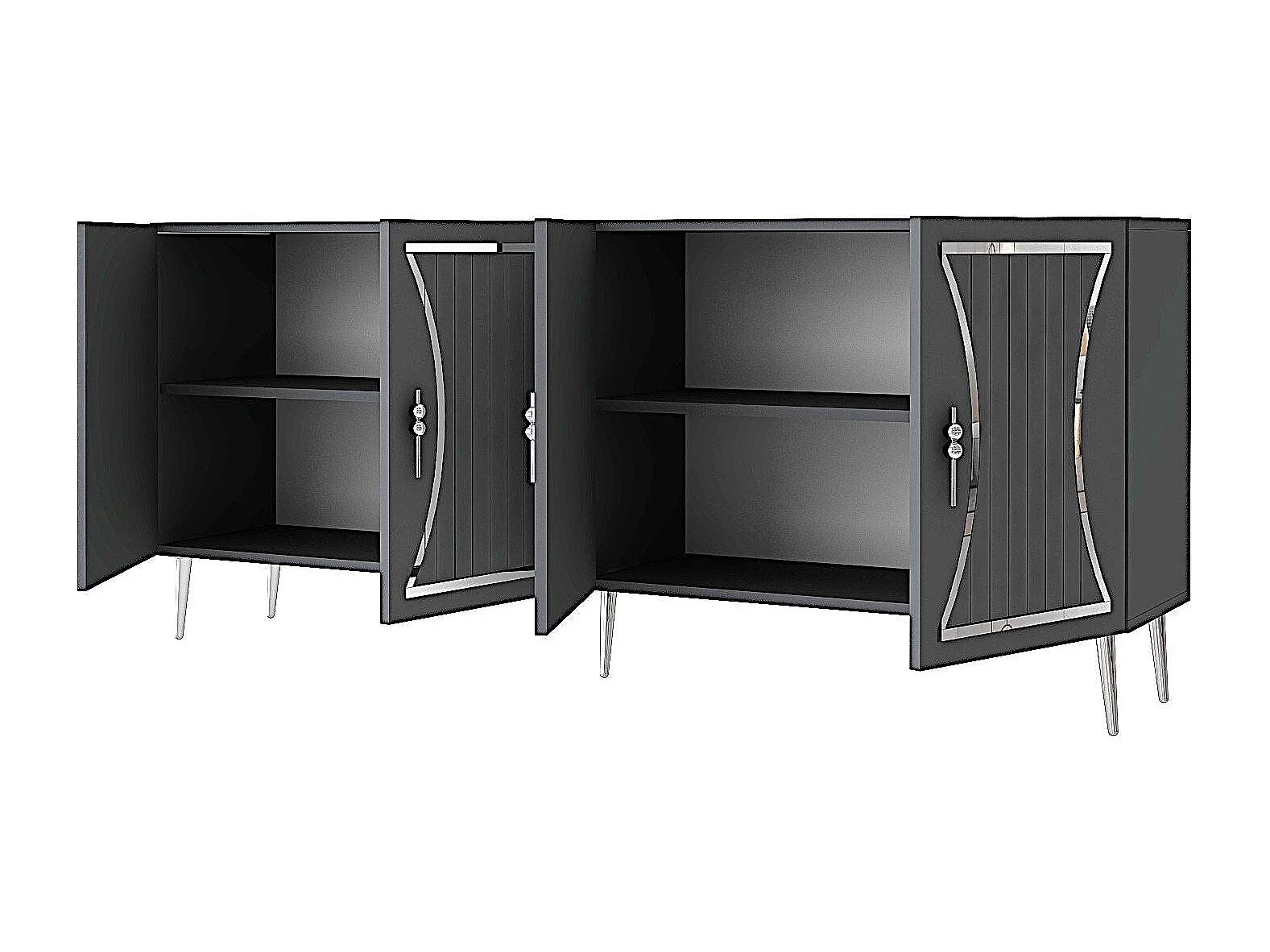 Komoda w kolorze antracytowym i srebrnym – 150 cm x 75 cm x 35 cm – pokryte cząstkami drewna i pokryte melaminą