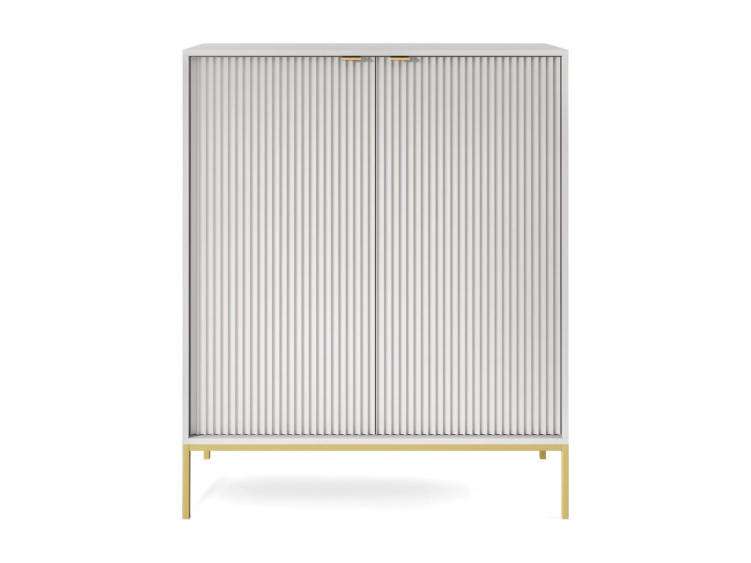 Komoda Design NOVA - Kolor: Szary, fasada Geriffelt, 2 drzwi, 2 szuflady, 83x104x39cm, złote metalowe nogi, mebel uniwersalny