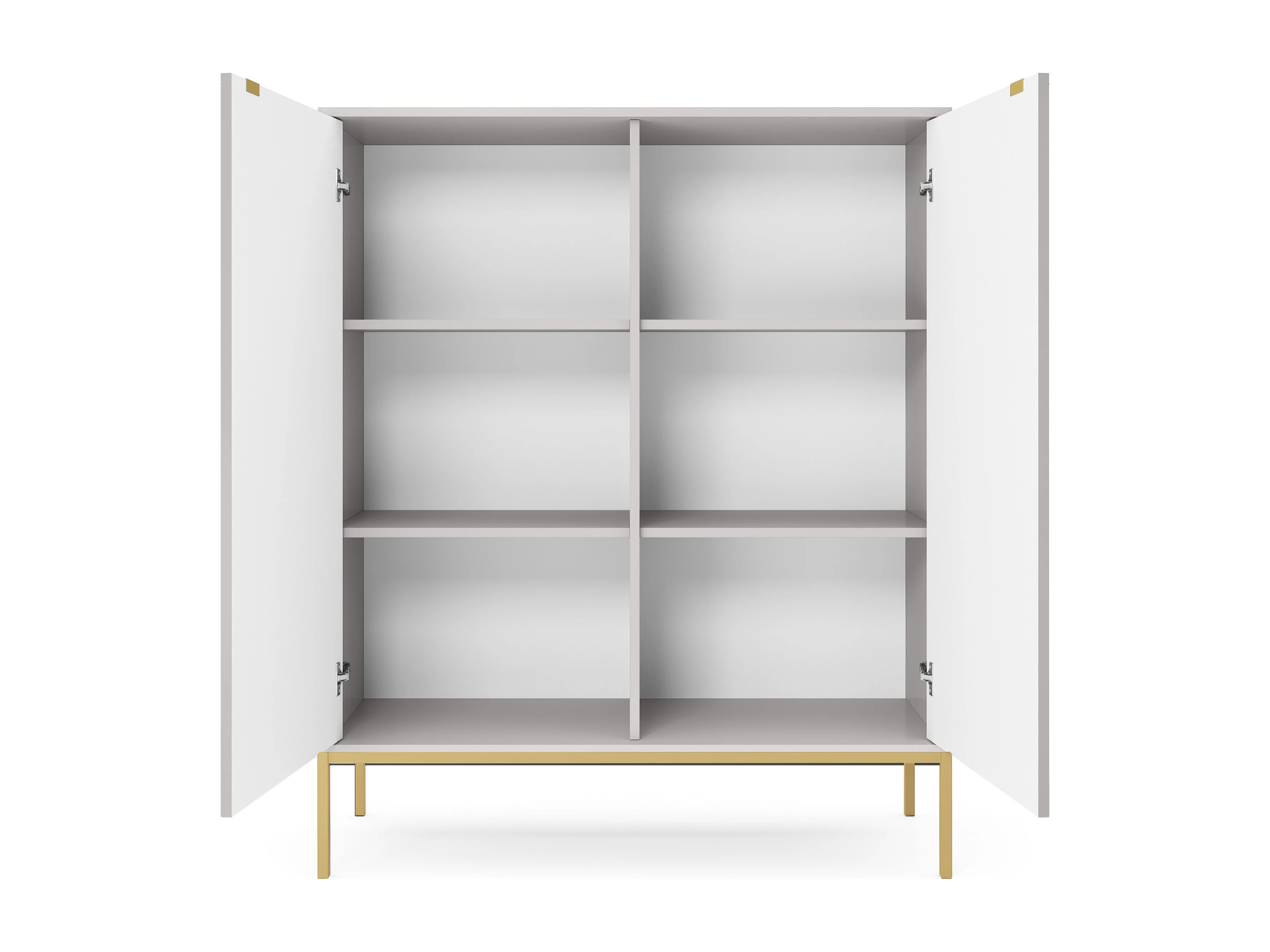 Komoda Wysoka Geriffelt DomoHome NOVA – 2 drzwi, Highboard z złotymi uchwytami, Szary, złote nogi 125x104x39cm - Elegancka do salonu