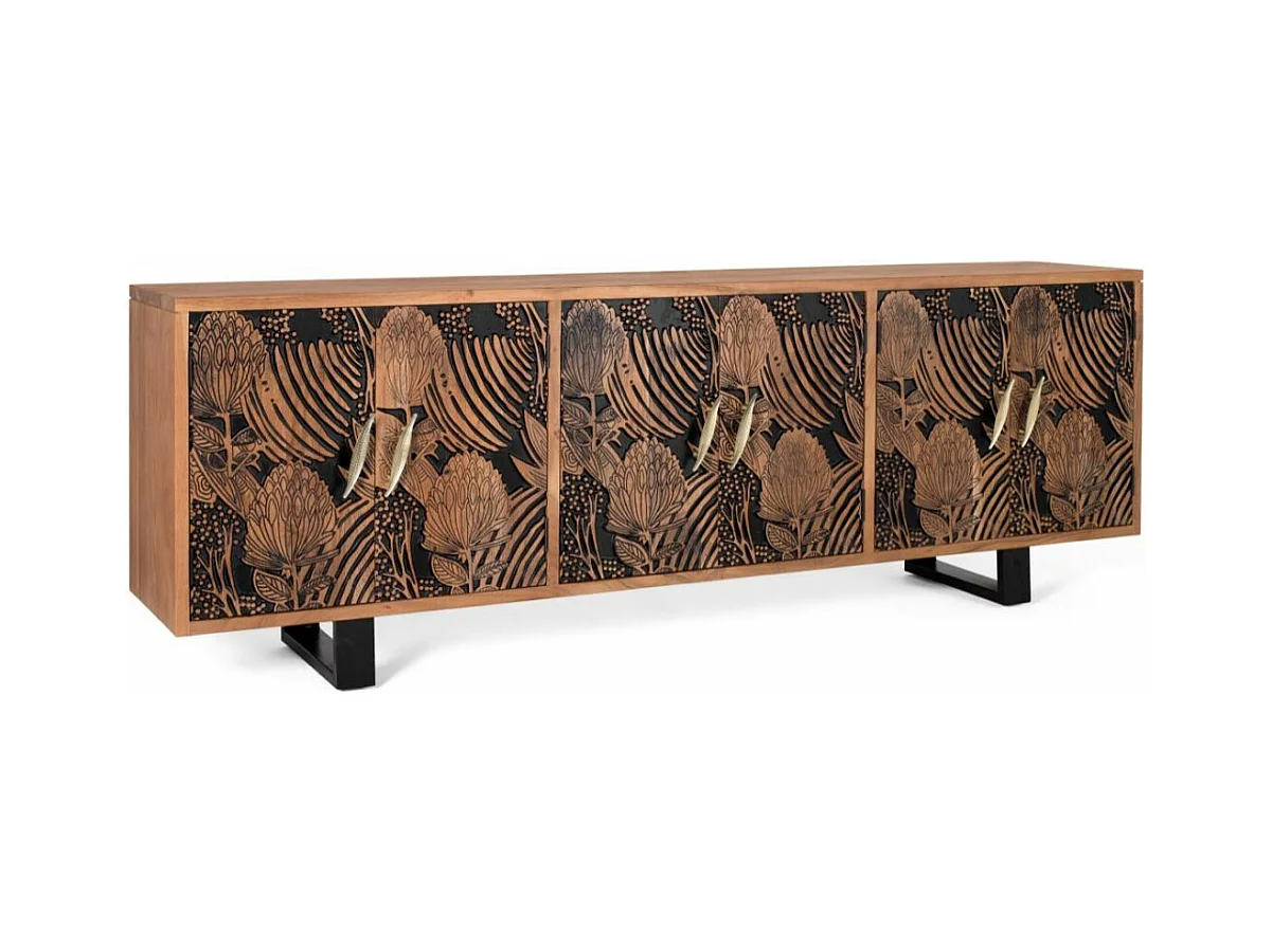 Komoda z 6 drzwiami z naturalnego brązowego drewna akacjowego