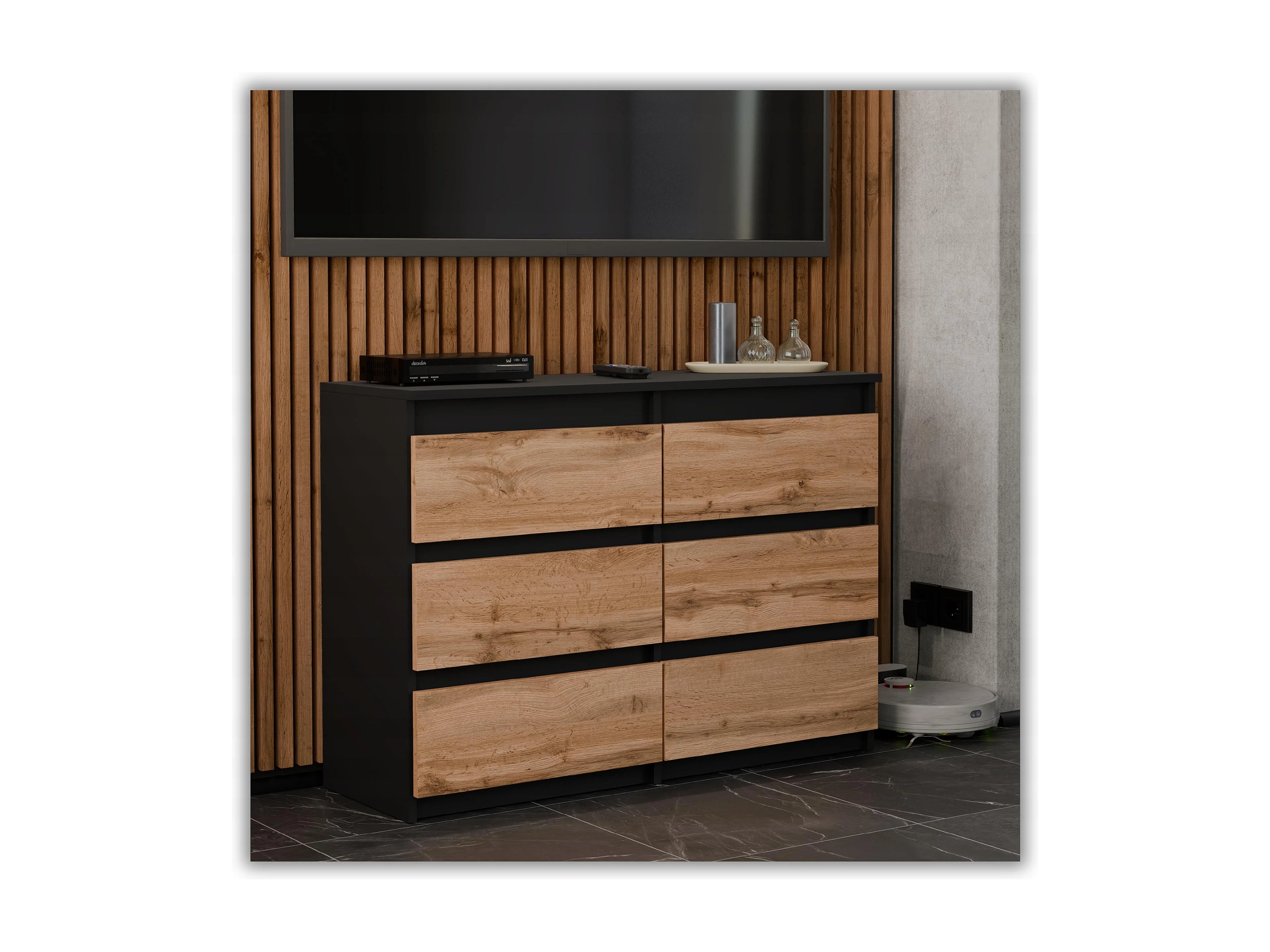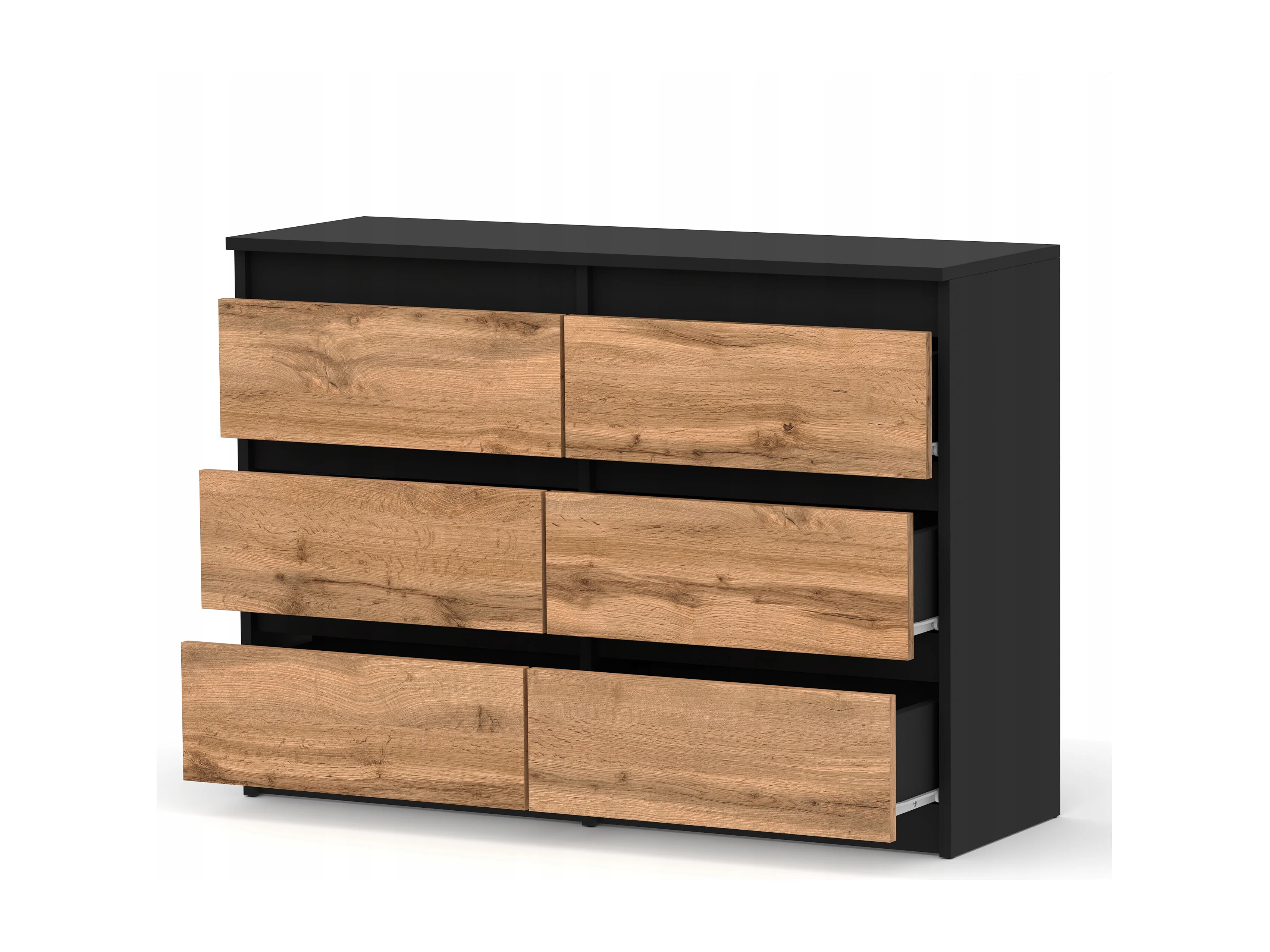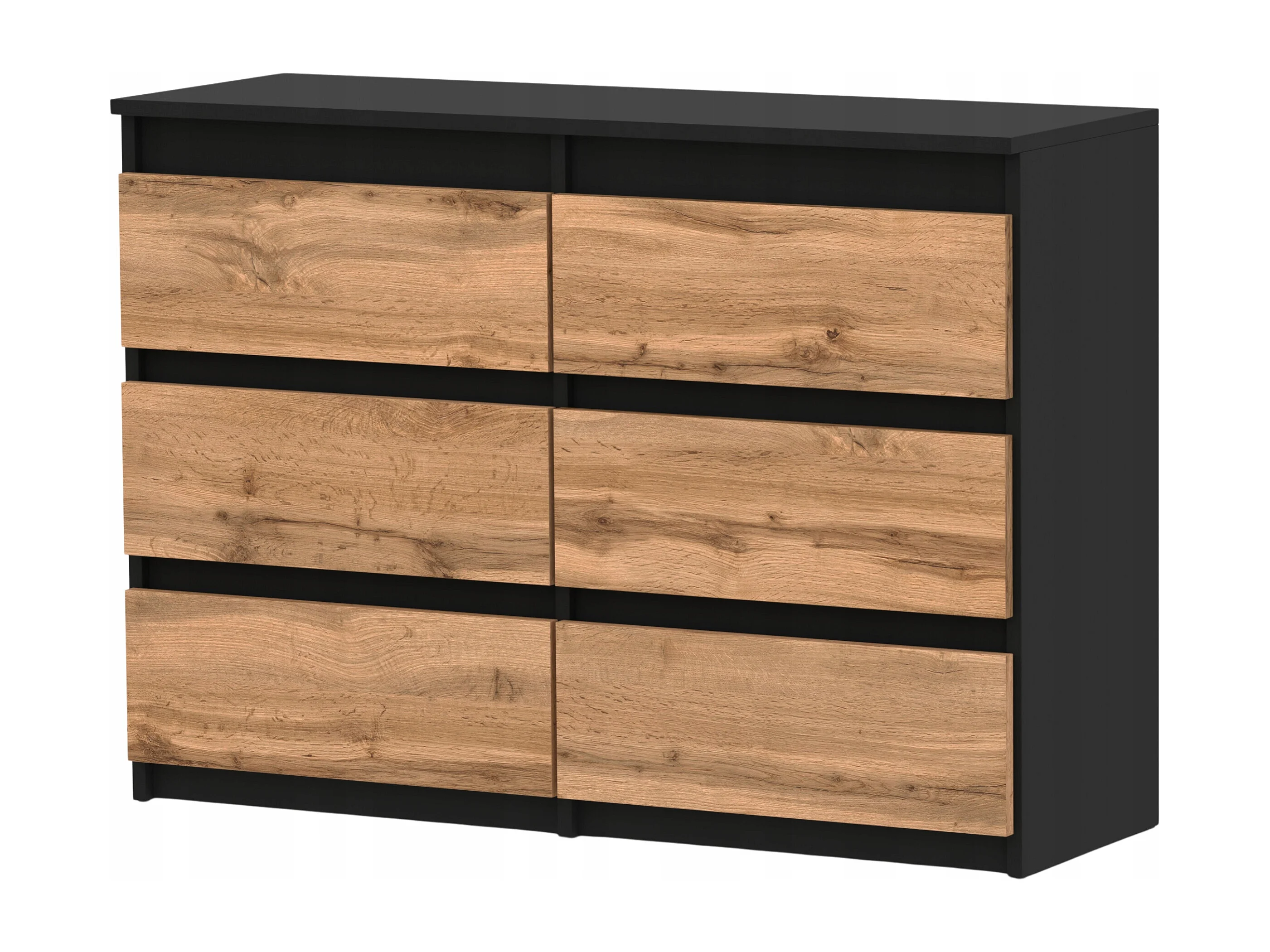 Komoda z 6 Szufladami 100 CM Szafka Czarny Mat Dąb Wotan Meble do Salonu Sypialni
