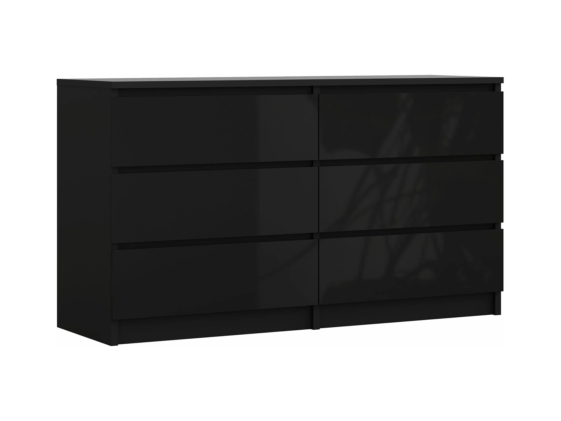Komoda z 6 szufladami: czarna matowa / błyszcząca czarna, 138 x 39 x 79 cm