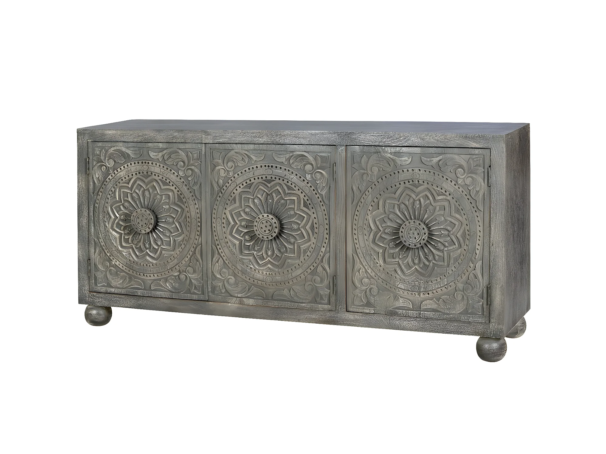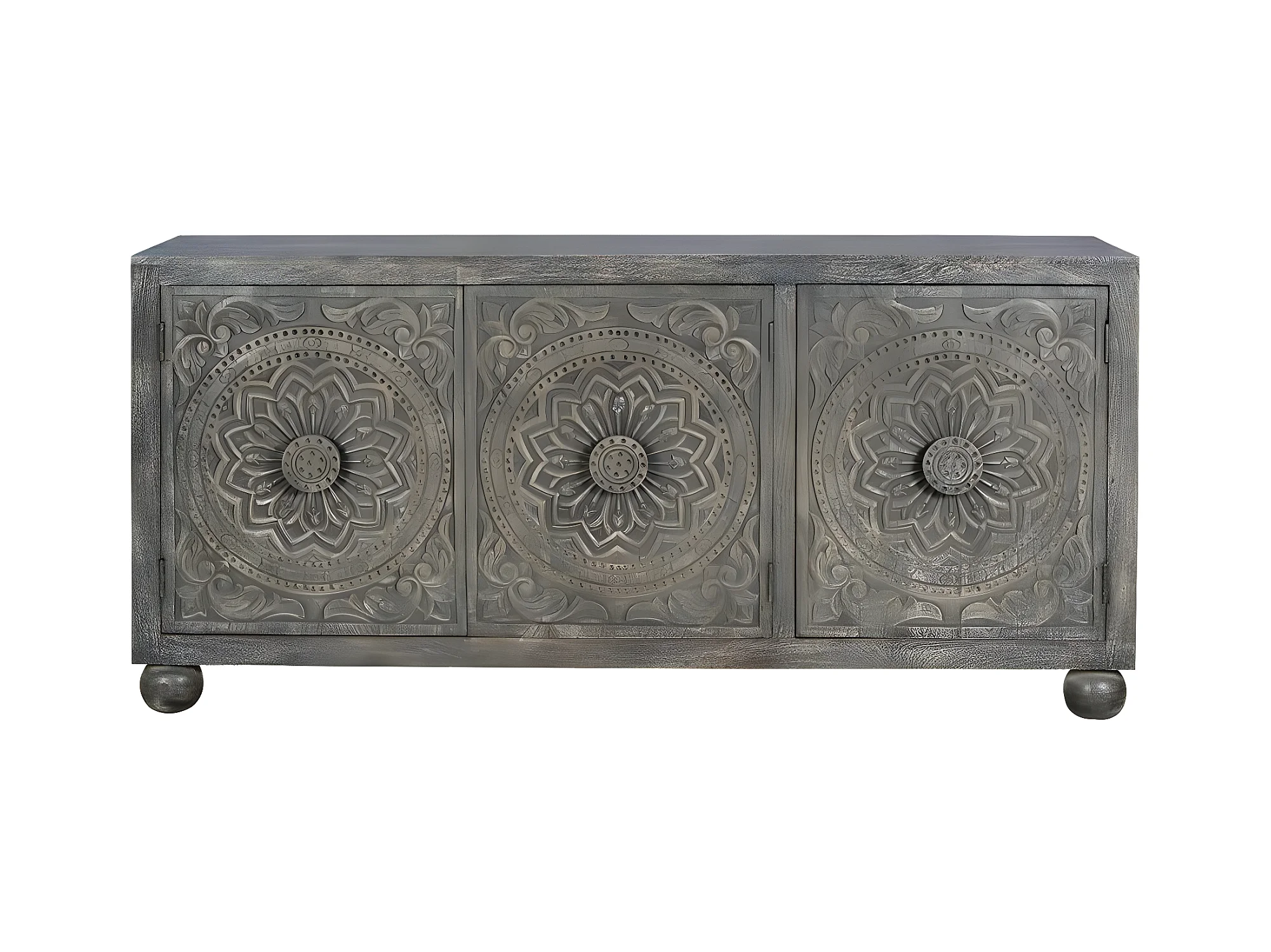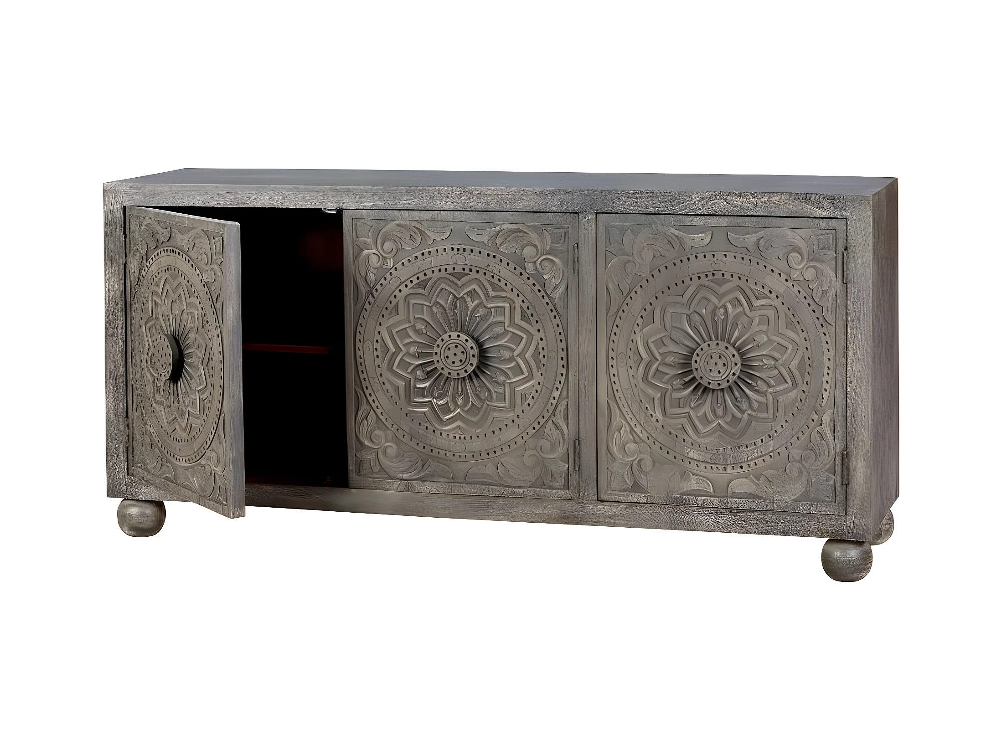 Komoda z drewna mango z dwoma ręcznie rzeźbionymi drzwiami bocznymi