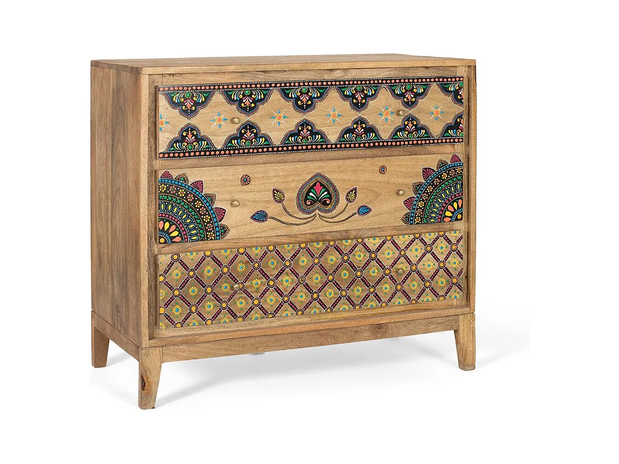 Komoda z litego drewna mango z ręcznie malowanymi detalami