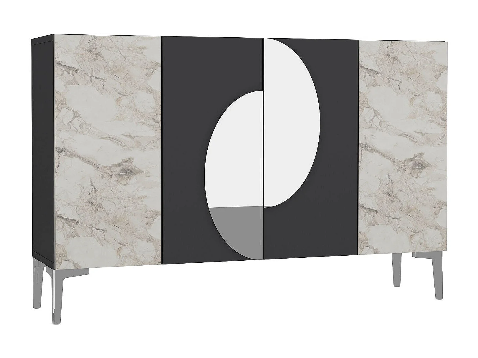 Komoda z płyty MDF pokrytej melaminą – 120 cm x 75 cm x 29,6 cm – antracyt, marmur Efez, srebro