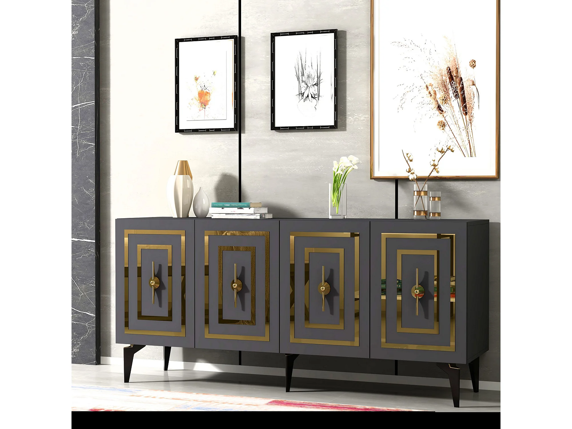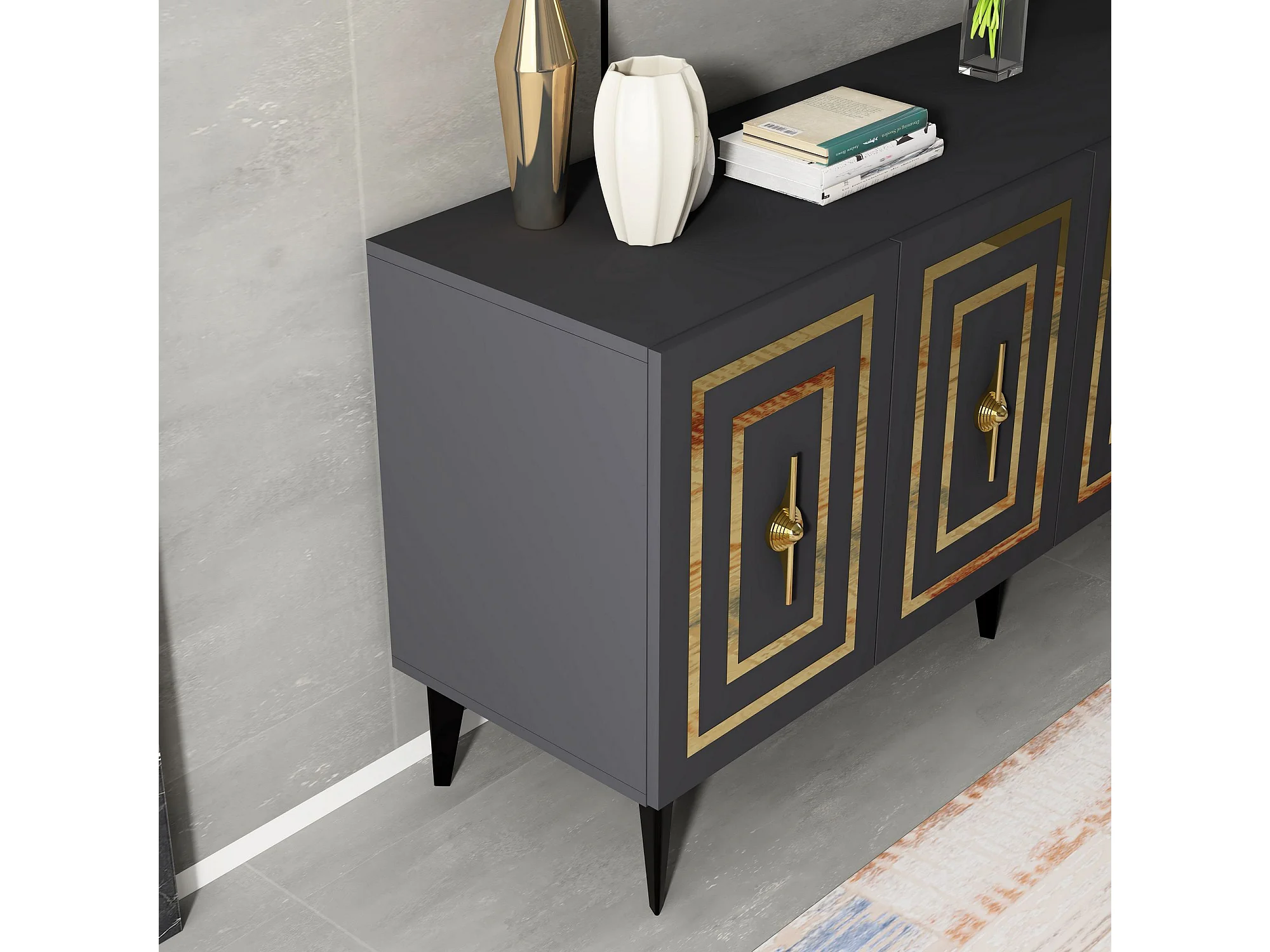 Komoda z płyty wiórowej pokrytej melaminą – 150 cm – antracyt