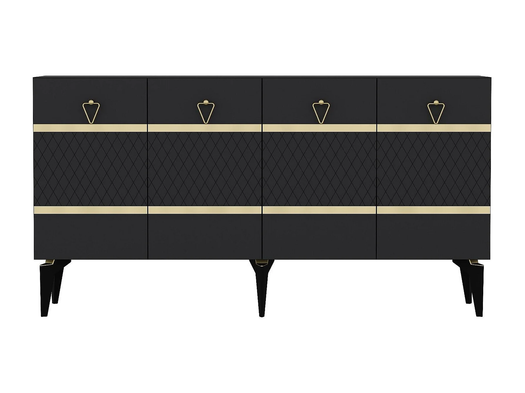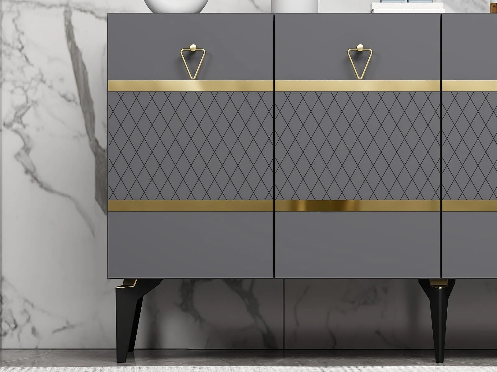 Komoda z płyty wiórowej pokrytej melaminą – 150 cm x 79 cm x 40 cm – antracyt i złoto