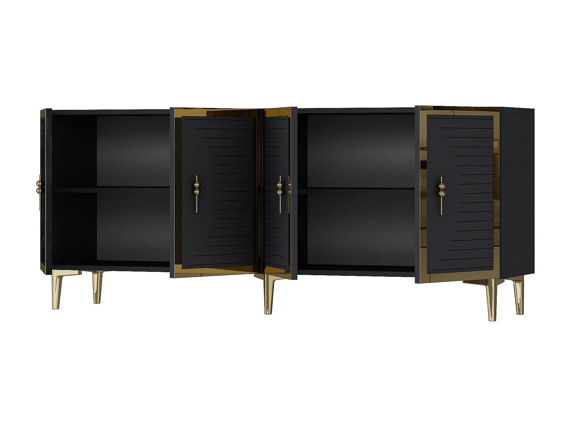 Komoda z płyty wiórowej pokrytej melaminą – 180 cm x 75 cm x 32 cm – antracyt i złoto