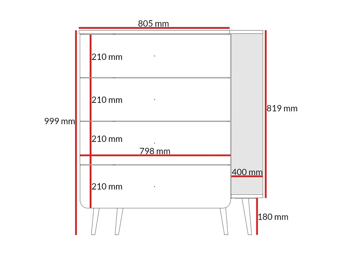 Komoda z szufladami Chloe 4S 80 Biała (czarny lub złoty uchwyt)