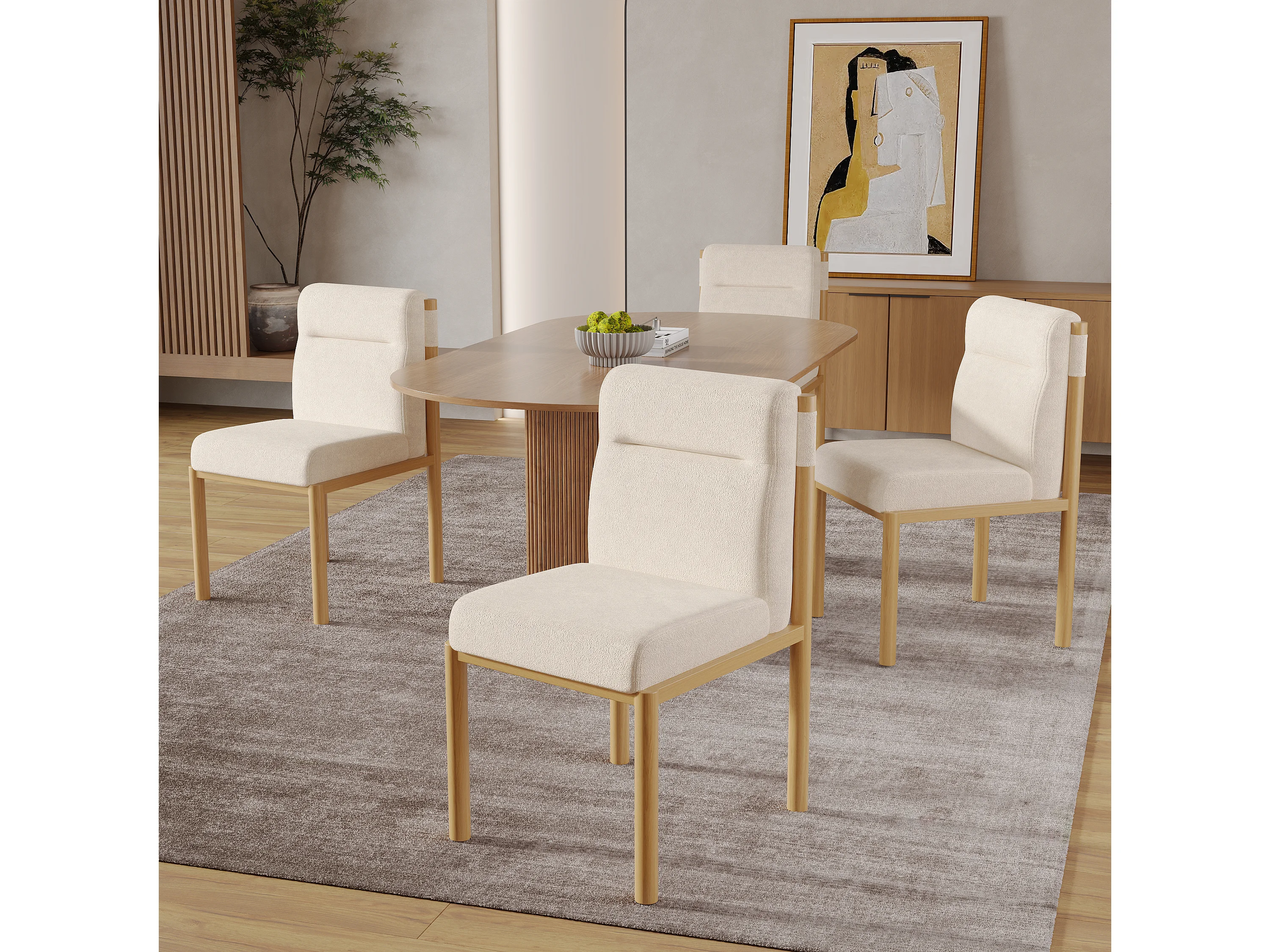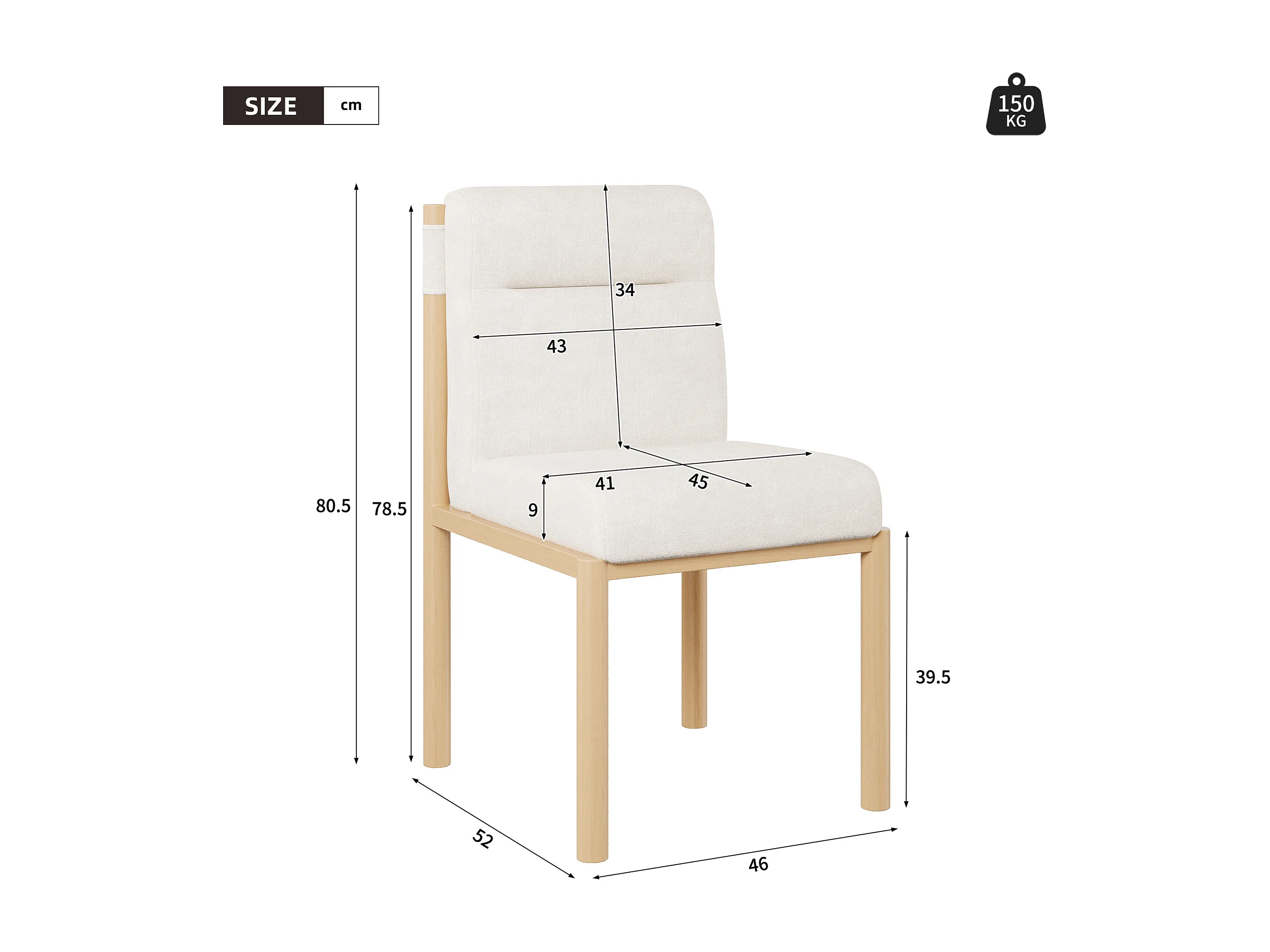 Komplet 2 krzeseł do jadalni - 46 x 52 x 80,5 cm - rama imitująca dąb i wyściełane siedziska - tkanina sherpa - beż.