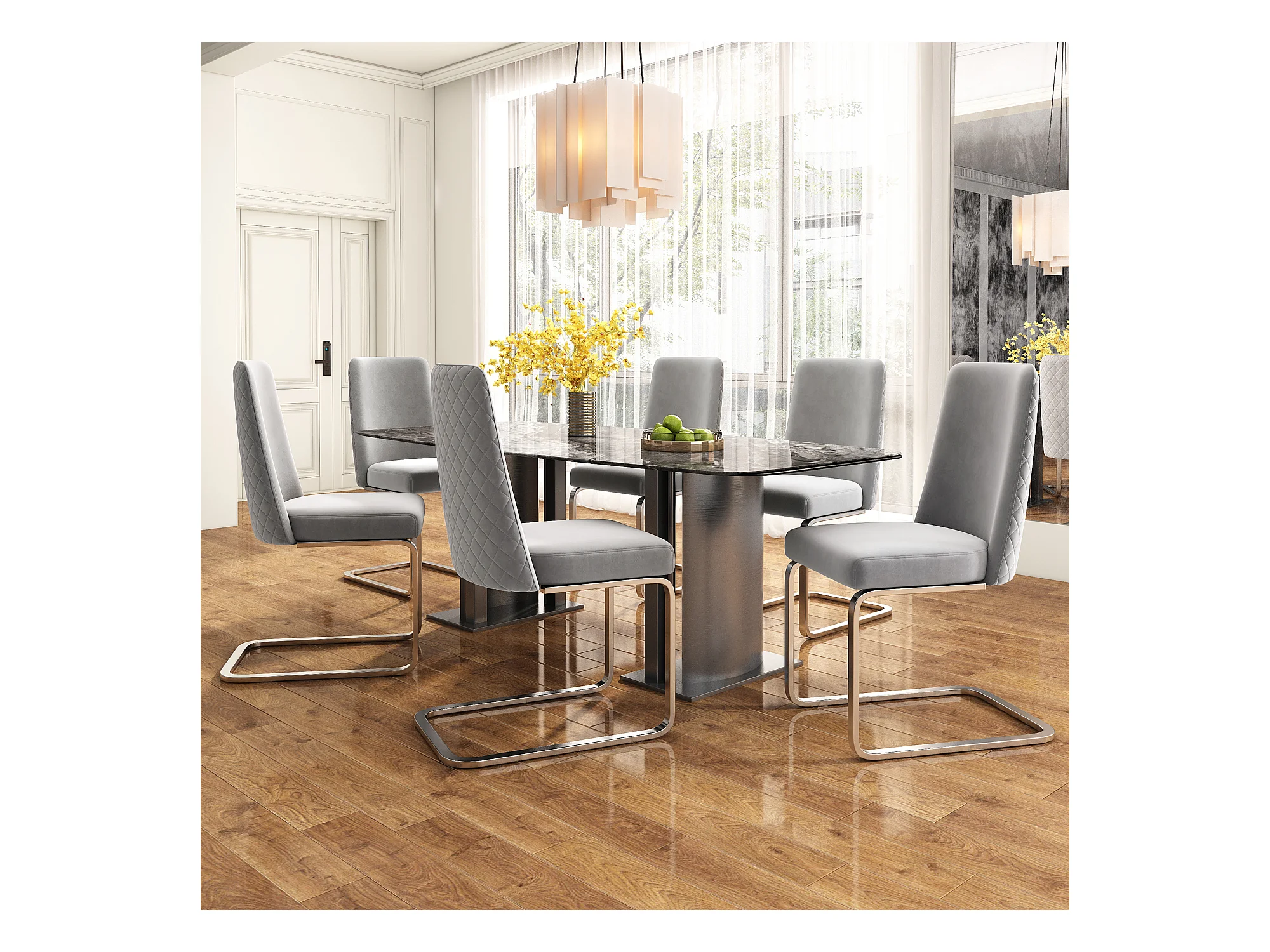 Komplet 2 krzeseł do jadalni - 63,5x63,5x47,63 - luksusowy aksamit - nogi metalowe w kolorze srebrnym - szary