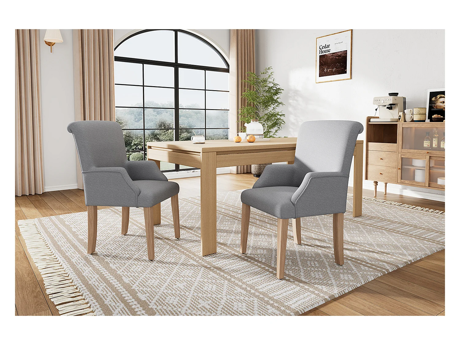 Komplet 2 krzeseł lnianych - 88 x 61 x 51 - z podłokietnikami i grubą poduszką - regulowane nóżki - szary