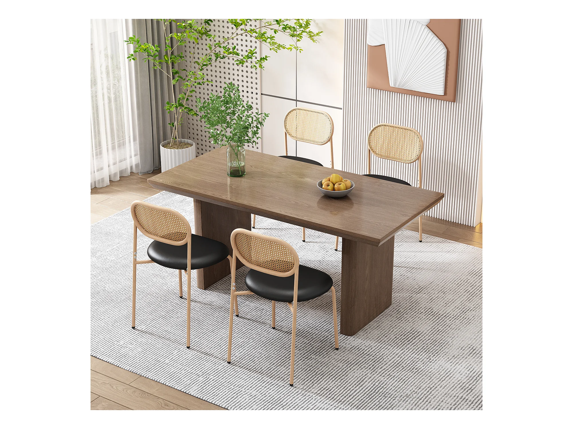 Stół jadalny z naturalnego drewna akacjowego i czarnych metalowych nóg