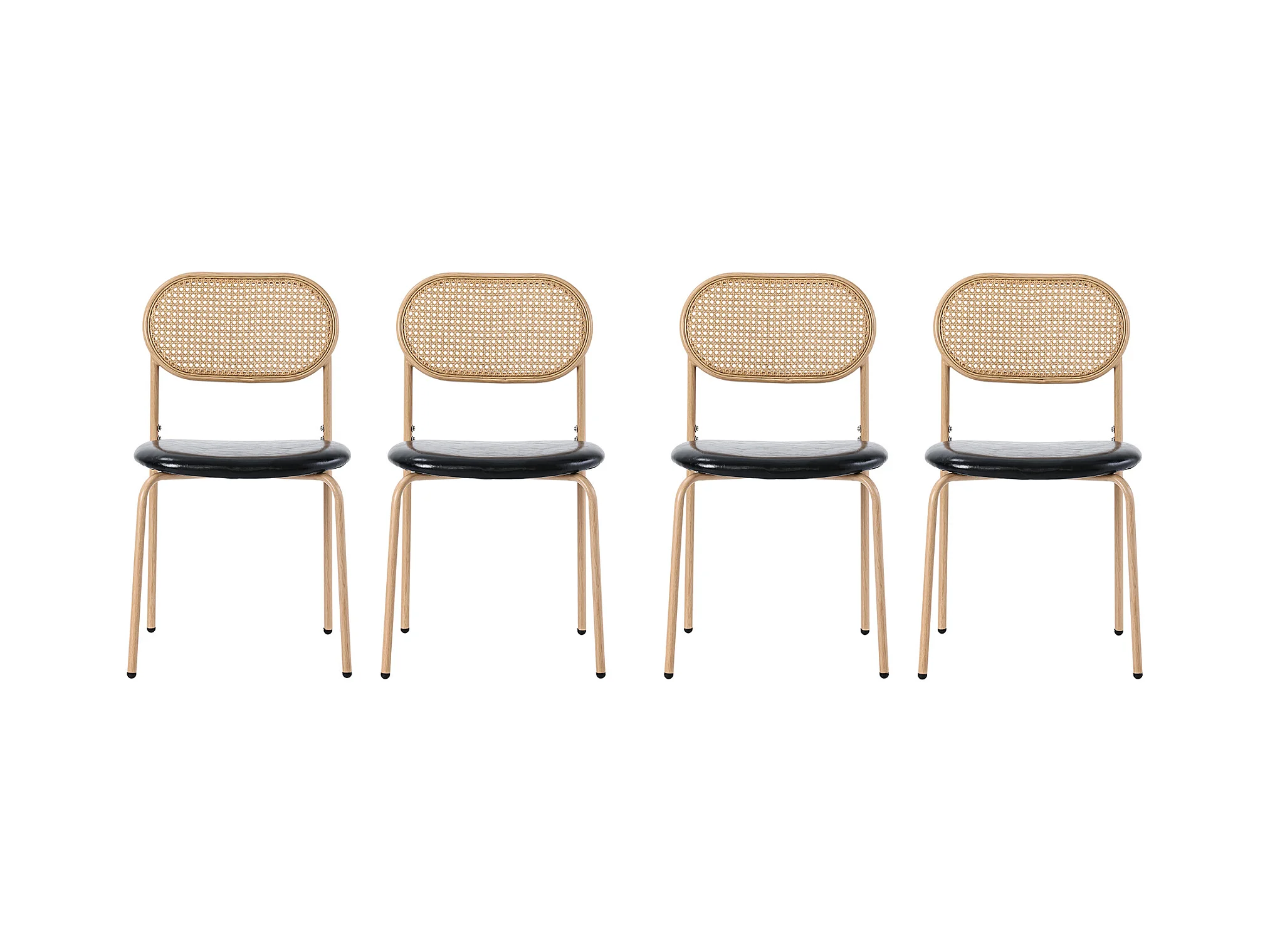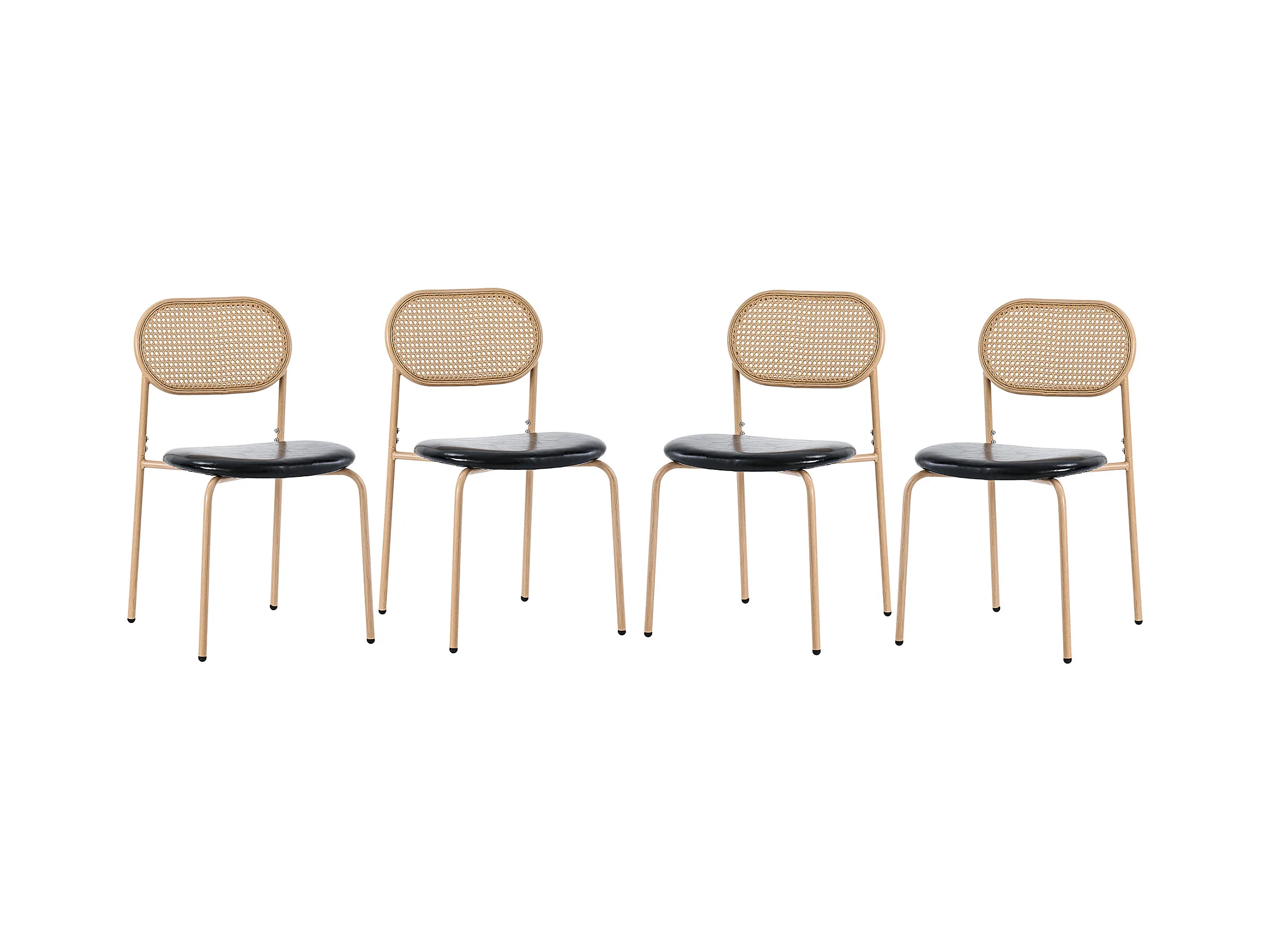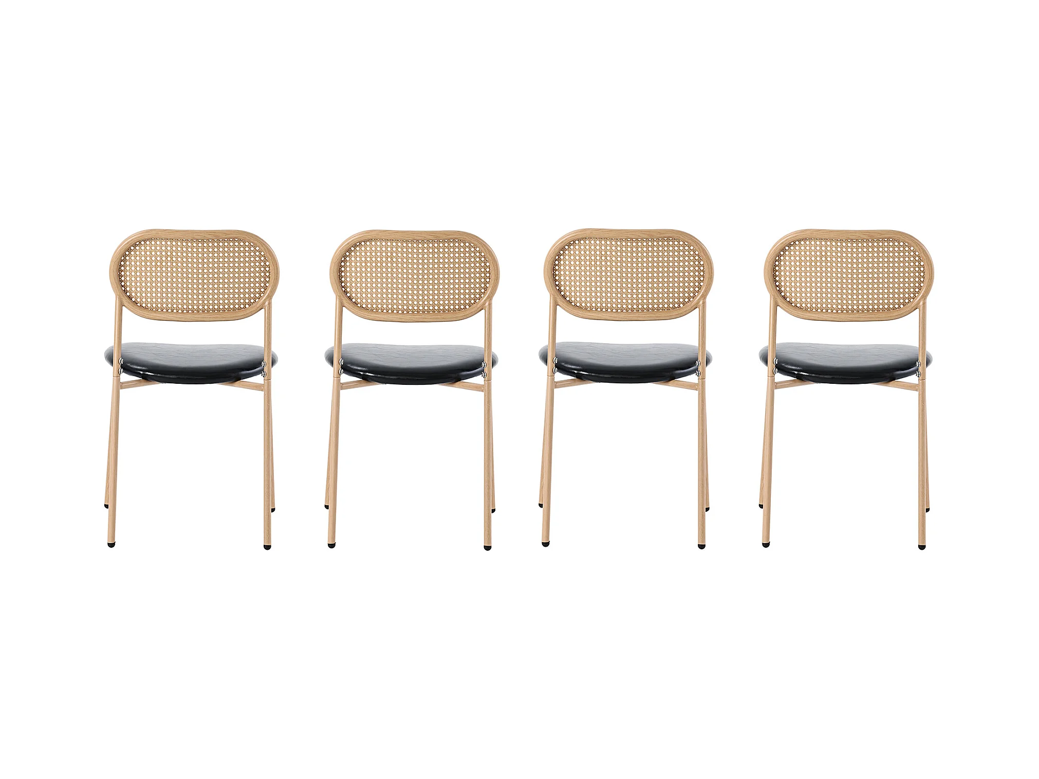 Komplet 4 krzeseł welurowych - 80 x 48 x 46 cm - z czterema metalowymi nogami - krzesło do sypialni rattanowe - czarne